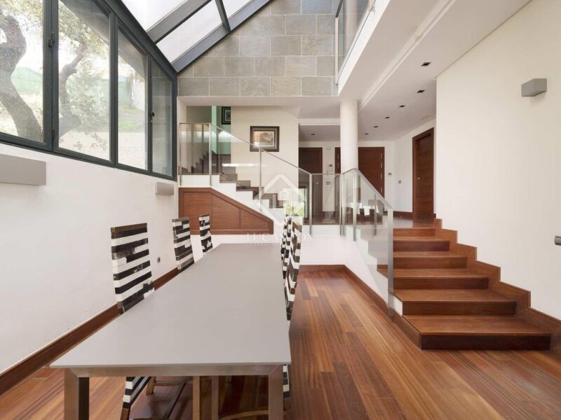 Lucas Fox is pleased to present you a fantastic property designed with an unmistakable style and completely ready to move into. A spacious property with plenty of space to live comfortably, as well as bright and with sea views. Located on a dead- access street, it is an ideal house to enjoy complete tranquility in one of the most prestigious urbanizations in Malaga that also has private security. This property has an entrance from two completely independent streets. On the ground floor, there is the spacious living-dining room full of natural light. It has a fireplace and access to the porch and pool. In addition, we find a guest bedroom , a full bathroom and a modern and fully equipped kitchen. On the first floor, there are two bedrooms that share a bathroom and the wonderful main bedroom with two bathrooms and two dressing rooms. On the second floor , there are two other bedrooms that, due to their size, can be used for various uses, such as a study, library or gym. Exterior, we find a swimming pool, a full bathroom and a barbecue area. The property has a sophisticated home automation system, electric shutters with adjustable slats, underfloor heating on the ground floor and independent hot/cold air conditioning system in all rooms. Completely integrated into the landscape of pine trees and rocks, this house is a true luxury and a huge opportunity to acquire a modern, comfortable and distinctive property .