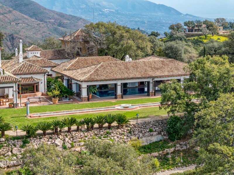 Stunning villa for sale in La Mairena, Marbella East, Marbella Captivating upscale mansion situated in a hidden retreat of peace, near La Mairena, providing unmatched seclusion amidst pristine natural landscapes. Positioned on a raised 5-hectare plot, this estate showcases awe-inspiring sweeping vistas of the countryside, coastline, and ocean. The primary dwelling spans across two stories, featuring a meticulously planned layout and elevator access. The lower level comprises an expansive living space with an adjoining library, a well-equipped kitchen, a formal dining area, a cozy lounge with a fireplace, and three opulent bedroom suites, two of which boast private living areas. These spaces seamlessly flow through a sophisticated hallway adorned with arched ceilings. In addition, this floor accommodates a gym area with a jacuzzi, two guest bathrooms, a laundry room, and storage amenities. Separated from the main structure is a covered pool area with changing facilities and a restroom, a 6-car garage, and a fully furnished service flat. The ground floor provides access to various spacious terraces, verandas, and charming courtyards, offering an exceptional alfresco living setting. The upper level showcases an expansive open salon, a lavish master suite, a living area/extra bedroom, all leading to striking terraces. Moreover, two complete bathrooms offer unobstructed sea views. Surrounded by meticulously curated gardens with fruit orchards, mature greenery, ponds, striking fountains, sculptures, and tranquil water features. Additionally, a petite house with panoramic 360-degree views serves as a dedicated space for artistic pursuits or hobbies. Situated a brief half-hour drive from Marbella's center, 15 minutes from the beach, and 5 minutes from La Mairena, this property offers a perfect blend of serene living within close reach of urban conveniences and coastal attractions.