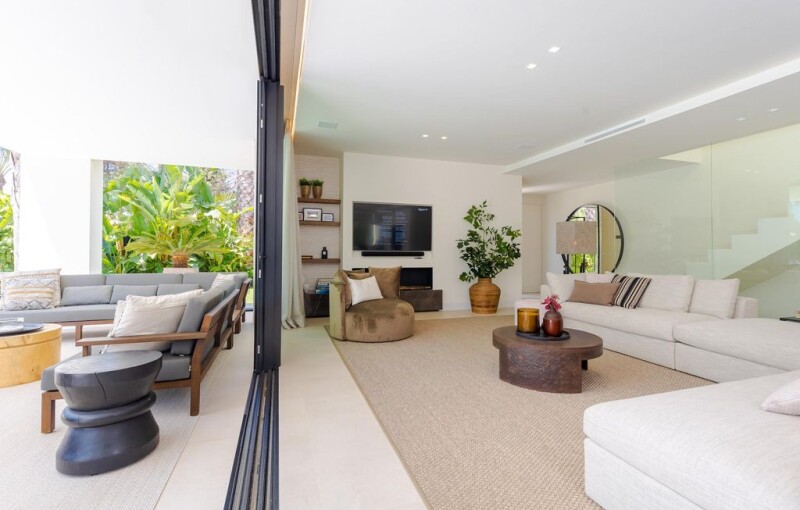 Fabulous villa with brilliant panoramic views for sale in Marbesa, Marbella This stunning luxury villa is located in the desirable area of Marbesa, in Marbella East. With 6 (4+2) bedrooms and 6 (5+1) bathrooms, this spacious property offers ample space for a large family or for entertaining guests. The villa spans across a built area of 340m² and sits on a generous plot of 810m², ensuring plenty of room for outdoor living. As you enter the villa, you are greeted by a grand entrance hall that leads to a bright and spacious living room, perfect for relaxation and socializing. The villa boasts a fully furnished dining room, where you can enjoy delicious meals with family and friends. The kitchen is open plan, perfectly equipped with all top Gaggenau appliances, it will become your personal cooking oasis with all you need including a champagne cooler and coffee corner. The large windows throughout the property provide breathtaking sea views and flood the rooms with natural light. The villa features a private terrace, overlooking the beautifully landscaped in a tropical manner private garden and an incredible, fantastic pool area with sun deck. Whether you want to take a refreshing dip in the pool or simply soak up the sun on the terrace, this outdoor space offers the perfect retreat. Additional features of this luxury villa include air conditioning, an ethanol fireplace for cosy evenings, a guest room for visitors, a storage room, and a gym for those who enjoy staying active. The property also has an alarm system for added security and a solarium for enjoying panoramic views of the surrounding area. Conveniently located close to amenities, transport links, shops, and schools, this villa offers the perfect balance of tranquillity and accessibility. With its prime location near the beach and golf courses, you can enjoy the best of both worlds - a peaceful retreat in a luxurious setting, while still being within easy reach of all the attractions and amenities that Marbella has to offer. Whether you are looking for a permanent residence or a holiday home, this brand-new villa is sure to impress with its idyllic combination of both luxury design and natural elements, all incorporated with high-quality materials.