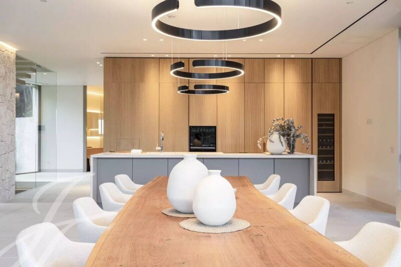 Discover unparalleled luxury in this brand-new villa, set on a private, tranquil plot of approximately 2,018 m² in one of Palma’s most sought-after areas. Boasting a total built area of 921 m², this exceptional property is adjacent to a non-buildable plot, ensuring peace and privacy. Entrance Level: A luxurious master suite with a walk-in wardrobe, en-suite bathroom, and a spacious balcony offering panoramic vistas. Three additional double bedrooms, each with its en-suite bathroom, complete this floor. Ground Floor: An open-plan living area bathed in natural light, seamlessly extending to a large sun terrace and a 19-meter infinity pool. The state-of-the-art Mobalco kitchen with a separate prep area combines cutting-edge design with top-tier functionality. This level includes a guest WC and a versatile multi-purpose room, ideal for a home cinema or office. Semi-Basement: A naturally lit level featuring a double bedroom with an en-suite bathroom, a climate-controlled wine cellar, a utility room, and a spacious 50 m² room perfect for a gym. Luxury Amenities: A spa area with a large indoor pool, two saunas, a shower, and an additional bathroom. A rooftop terrace with a jacuzzi, offering breathtaking views of the sea and cathedral—ideal for entertaining or private relaxation. High-End Specifications: Underfloor heating powered by a heat pump. Daikin air conditioning with individual room controls. Advanced security system with motion detectors and window sensors. Integrated sound system, natural stone flooring, and oak parquet in bedrooms. KONE lift for effortless access across all levels. A gas fireplace and two garage parking spaces. This luxurious villa seamlessly blends modern design with exceptional functionality, making it a dream home in Palma de Mallorca. Perfect for discerning buyers seeking privacy, comfort, and breathtaking views, this property is a rare gem in the heart of Mallorca. Son Vida – the epitome of luxury lifestyle in Mallorca was first recorded in the 13th century. The castle which was mentioned is now a famous hotel. The site started as a farming area and was developed by the Vida family. Nowadays it is a gated community with several golf courses, two five-star hotels, and a vast array of stunning properties with amazing views over the surrounding mountains and the bay of Palma. It has attracted famous visitors and royals and has been the home of celebrities, and golf and architecture lovers alike. It has easy access to all amenities like cultural events, cinemas, shopping, sports, and medical centers and it is only a stone´s throw away from the capital Palma. Famous beaches and their clubs are within a short drive and the airport is just 15 minutes away which also makes it attractive to commuters. Son Vida is divided into the newer and the older parts. In the new Son Vida, you will find stunning villas with purist and modern architecture and the more classical Mediterranean-style ones around the golf courses in the older part. So there is something for every taste in the selection of exclusive property in this unique enclave.