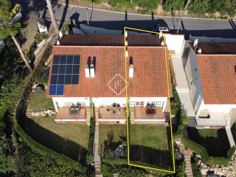 Lucas Fox presents this beautiful townhouse with views of the Mediterranean Sea, 5 minutes from Sant Feliu de Guíxols, an emblematic town on the Costa Brava known for its markets, restaurants and shops. It is located in a community with seven neighbours, each with their own private garden and a communal pool, making it ideal for summer holidays. The property has a built area of 201 m² and is divided into three floors. The house faces south and allows us to enjoy maximum light throughout the day. We enter the main floor which has a spacious and bright living-dining room with a fireplace and a fully equipped open-plan kitchen . The floor is completed with a guest bathroom with access to the terrace. We go up to the upper floor by the stairs and we find a double bedroom with its full bathroom , built-in wardrobes and incredible views of the Mediterranean Sea. On that same floor, we have two bedrooms with a separate bathroom . On the lower floor , there is a large multipurpose room that can serve as a fourth bedroom. The house has a large private garage for one car and motorbikes or bicycles and built-in wardrobes in each bedroom. The entire house has double-glazed windows, a gas radiator heating system and manual blinds. This property has a perfect location for summer holidays on the Costa Brava, in a very quiet residence with beautiful views, 5 minutes from the town of Sant Feliu de Guíxols, known for its fine dining restaurants, its shops, its historic centre , its market and its beach. Please do not hesitate to contact us to visit this beautiful property or request more information.