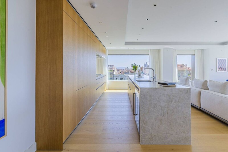 Located on the iconic Paseo de Gracia, this residence offers immediate access to the city's finest luxury shopping, world-class restaurants and historic landmarks. Marvel at nearby architectural masterpieces, such as Gaudí's Casa Milà, also known as "La Pedrera," and immerse yourself in the vibrant cultural life that defines this coveted neighborhood. This newly constructed 20-story skyscraper, designed by renowned architect Carlos Ferrater, stands as the tallest residential building in Barcelona's finest neighborhood. With its unparalleled height, residents enjoy breathtaking, unobstructed views of the entire city. As part of the prestigious Mandarin Oriental Residences, you will experience the pinnacle of luxury with exceptional services and amenities that are the hallmark of the brand, including 24-hour service, a la carte service and continuous surveillance. On the sixth floor, enjoy luxurious common amenities, including a state-of-the-art fitness center, exquisite massage room and outdoor pool area with elegant lounge areas. In addition, the building features a common living room and a meeting room available to reserve for your private events, all carefully designed to enhance your living experience. Each apartment includes a parking space inside the building, ensuring convenience and peace of mind. Step inside this stunning apartment, where natural light floods every corner through expansive one-piece windows, offering extraordinary views of the city, the sea and the mountains. The carefully thought-out layout features a spacious living room, dining room and a modern kitchen equipped with high-end appliances. Enjoy the comfort of two magnificent en-suite bedrooms with sensational views, each with its own luxurious bathroom finished with the finest marbles on the market, providing a spa-like retreat in your home, plus an additional guest bathroom. High-end finishes include custom wood cabinetry, exquisite oak wood floors, plus an excellent climate control system and home automation system, embodying the perfect combination of elegance and functionality. The charming balcony offers an ideal place to relax and enjoy the panoramic views, making this apartment an exceptional place to call home. Explore the epitome of sophisticated urban living at the Mandarin Oriental Residences Barcelona.