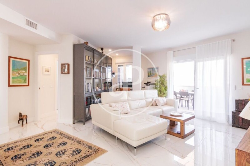 This wonderful penthouse has been completely refurbished with excellent qualities and interior design and is sold fully furnished, ready to move in. It consists of a very spacious and bright living room, integrated kitchen with island and equipped with high end appliances. From the living room there is access to the terrace furnished to enjoy different atmospheres with reclining sun loungers, garden table and chairs, barbecue, plants and awnings, all of which makes this space a unique place to enjoy the outdoors both day and night. The flat currently has a large en-suite exterior bedroom with comfortable built-in wardrobes and plenty of light thanks to its large windows and direct access to the terrace. It also has another complete bathroom. There is the possibility of easily obtaining a second double bedroom, with large windows and built-in wardrobes, by means of a simple division. The integral reform has included the complete renovation of the electrical and plumbing installation. The doors and windows have thermal and acoustic insulation, as well as electric blinds. The heating and air conditioning by aerothermics guarantee maximum comfort and energy efficiency. There are two parking spaces in the property, adjacent to each other and totalling a total of 22 square metres, included in the price. The property also has a storage room of 11 square metres. This is a unique opportunity to live in a modern, functional and comfortable space, with a great terrace and all the features that make this penthouse an exclusive property with an excellent location in Guindalera, in the Salamanca district. Can you imagine living here?.