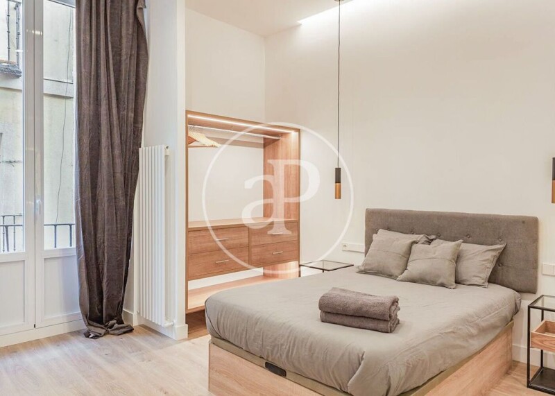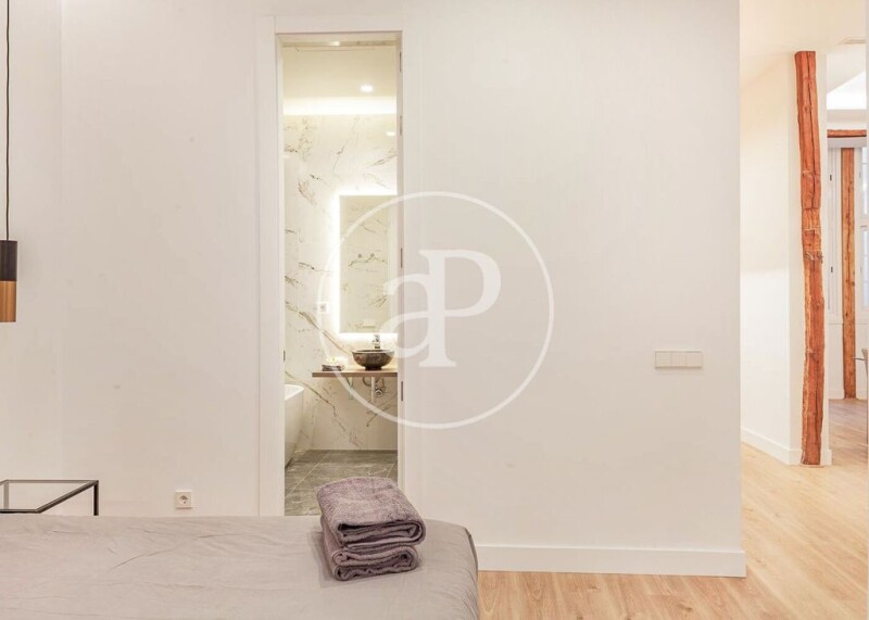 In one of the most representative streets of Sol, Carrera de San Jerónimo, next to the luxurious Espacio Canalejas and with privileged views of the Puerta del Sol, we find a cozy apartment renovated and furnished brand new. The building, with a classic facade dating from 1900, does not have an elevator, but houses a unique home with three bedrooms and three bathrooms, one of them en suite, and an integrated kitchen and living room with balconies overlooking the street. Carefully selected materials and an interior designed with every detail in mind, make this property a unique investment in the heart of Madrid. Can you imagine living here?.
