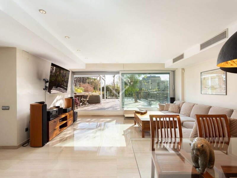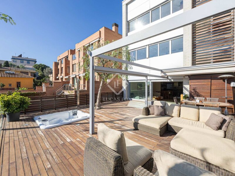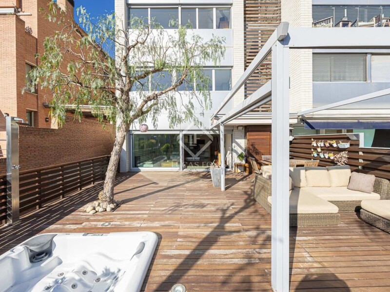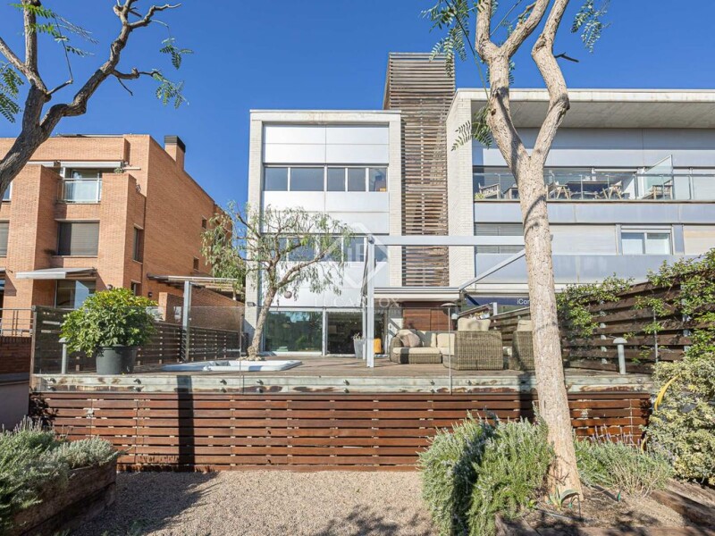 This fabulous modern and functional detached house is divided into four floors and a solarium that communicate with each other by lift and stairs. Its total area is 455 m2, of which 113 m2 correspond to the garage for three cars and motorcycles and 77 m2 to storage space and laundry area. Built in 2004 on a plot of about 250 m2, it has a wonderful terrace of 157 m2 facing the sea with a jacuzzi and garden area. It is located in the La Bonanova neighbourhood , close to prestigious schools and universities, public transportation, shops, and medical and sports centers. This specific property , measuring 265 m2, is divided into three floors and offers a very functional design, with a result full of very cozy personality. The luminosity and tranquility of its rooms stands out, since they are all exterior. In addition, the house has exclusive amenities, such as a porch area with folding awnings with sofas, a table and unobstructed views; four double bedrooms; three bathrooms, and a toilet. Pedestrian access to the house is through a walkway. The ground floor, at street level, is an intermediate floor , with a entrance hall with a built-in wardrobe , an lift, stairs and a hallway that leads to a bathroom with a bathtub, an exterior double bedroom with a built-in wardrobe , and a double bedroom with a wardrobe . built-in and views of the sea and a bathroom with shower that we access from both rooms. Originally, the sea view bedroom was two separate bedrooms. For its part, this floor has wooden floors. The first floor consists of two exterior double bedrooms. One is used as an study and has access to the suite bathroom and the other is the master suite with views of the garden and the sea and a full bathroom with shower and dressing room. Like the previous one, this floor has wooden floors. The staircase and lift lead to its fantastic terrace, ideal for a solarium and a sun lounger area, behind which the outdoor air conditioning machines are located. The lower floor is located at garden level. On this floor, open concept with cream marble floor , we find a guest toilet; the modern kitchen with a dining area integrated into the island, high-end appliances , an American refrigerator and a 1.2 m hood; the dining room, and the cozy living room with large sliding doors and at the level of the wonderful 90 m2 terrace with wooden floor for exterior. The exterior area can be enjoyed all year round thanks to its great orientation and silence. The porch area stands out with its folding awnings, a large table and a chill out area with sofas, small tables and a jacuzzi, as well as unbeatable views of the Bellesguard tower, the work of Antoni Gaudí. One level below, the tree-lined garden offers privacy and a very enjoyable green space. The floor , accessible by lift and stairs, has a large multipurpose storage area of 77 m2 with a laundry area and a large private garage of 113 m2 for three cars, motorcycles, bicycles or scooters. The house has ducted air conditioning, heating through radiators with a mixed boiler, aluminum windows with double glazed glass, motorized blinds, security system and wooden floors, marble and stoneware floors. It is an extraordinary house with a garden, terrace, solarium and private garage in one of the best neighborhoods in Catalan capital. Contact us to visit this luxury home.