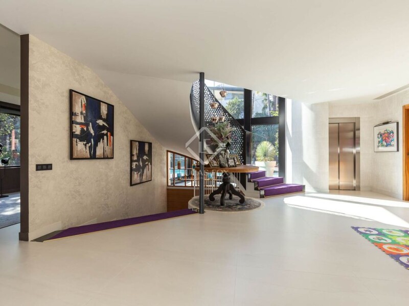 Modern detached house from 1994, fully renovation in 2016, with a constructed area of 665 m², a 530 m² perimeter garden with a saltwater pool on the ground floor , and a 113 m² sun terrace. This exceptional house is set on a flat plot, spread over four floors with sea views from the two upper floors and connected by an elevator and staircase. It boasts a highly functional and modern design, yet is also very welcoming and full of personality. The bright and tranquil rooms, all of which are exterior, are particularly noteworthy. The house also offers exclusive amenities such as four to five bedrooms, two of them en suite, outdoor areas , a guest toilet , an open-concept dining room living room with three spaces, and a garage with capacity for four cars and motorcycles. The house is accessed through the paved area next to the pool, parallel to the ramp access to the garage. The house is spread over four floors, clearly separating the day area . On the ground floor, a spectacular entrance hall with built-in wardrobes on both sides opens onto the spacious, loft-like day area space, with large windows that allow natural light to enter at any time of day. To the right of the entrance hall, behind the wardrobe, is a guest toilet and the elevator that connects all floors and stands out on the façade like a cylindrical sculpture intertwined with the cube of the house. Upon entering, the elegant and spectacular curved staircase stands out alongside the three-story west-facing glass façade, flooding the entire day area with natural light, decorated with exquisite taste. The large 1.20m x 1.20m porcelain stoneware flooring provides continuity to the 124m2 space, which is divided into four rooms: a more private living room area for TV behind the stairs, a desk area, a main area with three sofas and a chaise longue, and the formal dining room next to the garden access . Next to the dining room is the kitchen with Bulthaup furniture, open to the dining area via a peninsula with an office area. The kitchen is equipped with high-end Gaggenau appliances (double refrigerator, hood, gas hob and teppanyaki grill, coffee maker, microwave, oven, and dishwasher) integrated into warm gray wooden base units and wall units. Between the kitchen and the entrance hall , the laundry and ironing room are hidden behind walnut paneling. The exterior space of approximately 1.20m2 completes the floor . 530m2, with two fantastic chill-out areas consisting of sofas and a dining room table, both with motorized awnings, one next to the saltwater pool and the other next to the dining room access , in addition to the well-kept garden with trees. The first floor , with its night area and natural oak wooden floors, is accessible via an elevator or an open staircase leading to the hall. All the bedrooms here are made of solid chestnut wood. A double suite features built-in wardrobes and a full bathroom with a shower. Along the south facade, a security area houses two double bedrooms with built-in wardrobes that share a bathroom and a full bathroom with a shower and bathtub. The floor is completed by a spectacular master suite, perfect for a magazine, with a separate bathroom, security camera viewing, a built-in wardrobes area, a dressing room, a full bathroom with a shower, and a double bedroom area with sea views. The second floor , with spectacular sea views, is intended for the work area, but could also be another master suite. Accessible via elevator or staircase, it leads to a hall open to the large glass door. There is a full bathroom with a shower and a large room used as an study area with a living room and access to a 113 m² terrace with sea views and a chill-out area with sofas and sun loungers. The semi-basement floor consists of a garage for four cars, motorcycles, and bicycles, and features an electric charger. A double-paned garage door with a security lock is also a highlight. A storage room annex the garage. A high-security door leads to a hall that leads to the spacious gym, which enjoys natural light thanks to its high windows. The pool's machine room annex the machine room, which houses the aerothermics for ducted hot and cold air conditioning and underfloor heating, a storage tank, an additional boiler, and a water softener. Next to the staircase and elevator is the room for the home automation and security systems. The house has underfloor heating and ducted hot/cold air conditioning using aerothermics, with thermostats in room. Photovoltaic panels and a 12Kw battery. UPS system with an additional 10Kw. Three-phase cable. 2 GPS antennas. Double high-security systems. Aluminum windows with armored double-glazed Climalit glass (P6B glass) and motorized exterior screens. 13m motorized awning. Security systems with alarm. Water softener. Automatic irrigation. Natural oak wooden floors . The Ciudad Diagonal area has private security. Home automation with a mobile app for remote control. Saltwater pool. An extraordinary house with a private garden and pool in one of the best neighborhoods of Esplugues de Llobregat. Contact us to visit this luxury home.