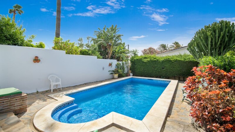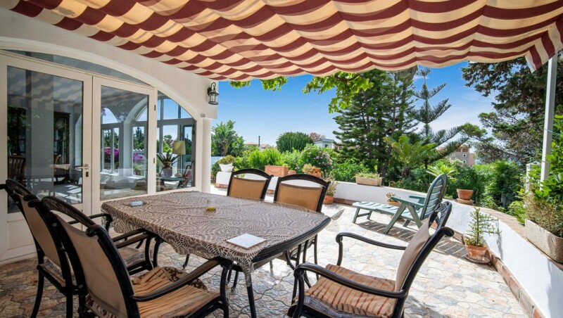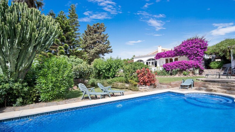 Nicely located villa in a cul-de-sac in Very private and quiet, some seaviews. Walking distance to the beach and shops. Close to the port and town center. All on one floor. Living and dining area, fully fitted kitchen, 4 bedrooms and 3 bathrooms. Covered and open terraces, bbq area. Nice mature garden and private pool. Carport for 2 cars. A unique property, one to see!.