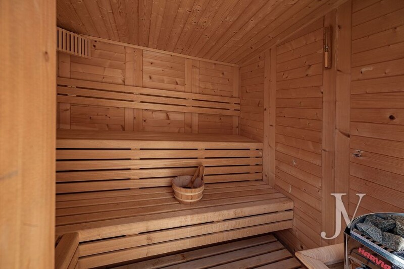 Santo Domingo, urbanization with 24-hour security: Villa completely renovated in 2021 on a flat plot of 1,600m2 Ceiling height in the living room of 5.25 meters. Heated pool AEROTHERMAL boiler with support from photovoltaic panels. Underfloor heating + hot / cold fan coil + Splits Canal water + well for the garden and swimming pool. The house is distributed as follows: Access floor: Living room - dining room with fireplace Kitchen with office and breakfast area Office Courtesy toilet Bedroom with full bathroom en suite. 1st Floor: Living area 2 bedrooms, each with its own full bathroom en suite. Basement: Living room or games room with fireplace (with pre-installation for Kitchentte) Guest toilet Guest bedroom with full bathroom Staff bedroom with full bathroom Laundry (laundry and ironing room) Storage rooms Engine room. On the plot there are 2 more buildings: One with a barbecue, changing rooms + sauna and outdoor Txoco area And another building which is the GARAGE, for 2 cars, with electric charger.