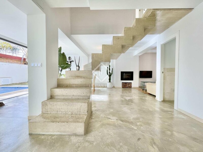 Lucas Fox presents this charming three- floor house for sale, located in the quiet area of Cabo de las Huertas. The comfortable villa is located near the sea, but with a lot of privacy, and has a total constructed area of 250 m². Its interior spaces receive abundant natural light, thanks to its orientation. Upon entering the house, we are welcomed by an entrance area, which connects the entire main floor . It offers a seating area, a bright and open space with large windows that allow in natural light and offer beautiful views of the garden. Adjacent to this area is the formal dining room , ideal for meetings and special dinners. The fully equipped kitchen offers a functional layout with quality cabinets and granite countertops. In addition, it has a breakfast bar, perfect for enjoying a morning coffee. On the first floor, the house has four large bedrooms, all with built-in wardrobes and windows that provide pleasant ventilation. The main one has its private bathroom. Climbing the stairs straight, we reach the study area, which is connected to a large terrace with views of the entire area and the sea. The exterior of the property offers a small garden area with green areas and the pool area. In addition, the house has a garage for two vehicles, closed to provide security and privacy. This house is a unique opportunity for those looking for a comfortable, functional family-friendly property with privacy. Due to its design and excellent location, this property is perfect as a first or second residence. Get in touch for more information.