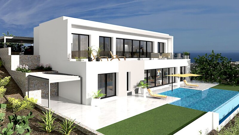OPPORTUNITY, NEW MODERN VILLA WITH STUNNING SEA VIEWS, in rural scenery, In a luxury area, with outstanding mountain and sea views. With large terraces and 12 x 3m infinity pool and a full 10 years building warranty. Your personal touch can be introduced in the fishing. With high energy efficiency as the most modern equipment’s are installed. A lovely opportunity for a fantastic home for today and tomorrow... General details: Built: Finalized Summer 2025 Plot: 896 sqm Villa: 284 sqm. Location: Denia area, Rafol. Room details: Bedrooms: 5, Bathrooms: 5, Toilets: 1, Kitchen: 1, Storage room: 1. Living-Dining room: 1, Covered terraces: 1 (large terrace at living room area), Pool: private, infinity 12 x 3 meter, Parking: double garage, Heating: underfloor heating. Characteristics: Quality: very good, Condition: very good, Furniture: no, Sun placement: very good, Views: beautiful mountain/valley and sea views, Ambiance: very quiet, Privacy: very private, Landscape: flat, Steps: few, Extras: Modern style, shutters, air conditioning hot and cold, Solar panels for 5KW, wardrobes, high energy efficiency, completion: July 2025.
