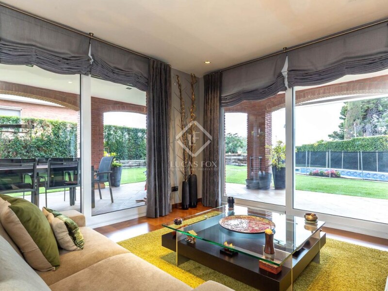 Detached house with exposed brickwork and a porch and a flat garden with a swimming pool on the ground floor floor, with modern finishes, of approx. 645m2 built in 2006 on a 729m2 plot with a 538m2 perimeter garden and a 29m2 pool, as well as a garage for 5-6 cars. The house consists of 3 floors plus an attic, connected by a lift and stairs. In addition, it has an annex shed in the back area for the laundry area. The luminosity and tranquility of its rooms, all exterior, stand out. In addition, the house offers exclusive amenities such as a perimeter garden with a porch and chill-out area, a saltwater pool, artificial grass, 5 double bedrooms, 4 bathrooms, natural parquet, modern finishes. The house is accessed through the beautiful and spacious garden at ground floor level, where several palm trees, the vegetable garden and the pool stand out. The side access door is reached through the garden. A entrance hall with built-in wardrobes, a lift that connects all the floors and a staircase with a stainless steel railing, lead to the spacious day area with three L-shaped rooms. Two cozy living rooms with large balconies to the 44.40 m2 porch and the garden at pool level, make the space flow towards the exterior, giving a great feeling of tranquility. Next to them is the formal dining room also with large balconies that communicate with the porch area where the large exterior table is located to enjoy events with family or friends. This pleasant and quiet exterior space is also perfect for an exterior sofa area, giving the house great charm. A glass door connects the dining room with the modern kitchen. The kitchen stands out for its modern furniture, with a peninsula area with stools and a dining table next to the large balcony and the fireplace, with views of the rear paved garden . It has Miele appliances (induction hob, integrated dishwasher, oven and microwave), Pando extractor hood and American fridge. Annex to the kitchen is an ironing and storage room, ideal for locating the utility room , which is currently in an exterior annex together with the boiler room, accumulator and water softener. The day area is completed by a room with views of the rear garden , ideal as an study or bedroom , and a full bathroom with shower. The night area is located on the first floor and consists of a hall with the main staircase and the elevator. A double bedroom facing west with a built-in wardrobe and a 3.80m2 balcony with views over the side garden , a full bathroom with a shower, a double bedroom facing south with built-in wardrobes and a double bedroom facing east with a built-in wardrobe and a 3.80m2 balcony with views over the side garden that share a full bathroom with a bathtub. The night area is completed by the suite with its large bedroom facing south and west with a wardrobe area, access to a 38m2 terrace with views of the sea, the garden and the pool and a full bathroom with a shower, two sinks and a bidet. The attic with a sloping roof, accessible by elevator and stairs, is a single space divided into several rooms, two living rooms, one of them with a fireplace , and a gym area. The flexibility of this space allows it to be easily adapted to multiple uses. The floor completes the house with a large garage for 6 or 7 cars, motorcycles and bicycles, with a laundry room, a room for a wine cellar or storage room and the machine room for the saltwater pool. The house has underfloor heating with a thermostat per floor, air conditioning with split inverters. Hydraulic elevator with telephone. White lacquered doors, Technal aluminum windows with double glazing. Motorized blinds with adjustable slats with a single button for closing and general opening. Alarm. Smoke detector. Water softener. Automatic irrigation, high-quality artificial garden and saltwater pool. An ideal family home with a porch, terrace, garden and garage in one of the best neighbourhoods in Sant Just Desvern. Contact us to visit this luxury home with modern finishes and ready to move into.