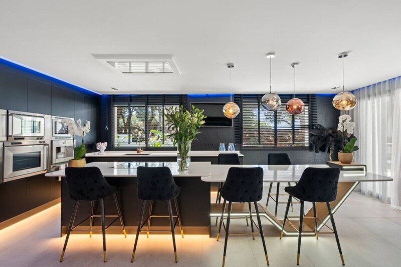 We are pleased to present you this impressive residential villa located in the exclusive and coveted area of Marbella, a privileged location that offers both privacy and easy access to a variety of amenities. This meticulously designed property combines modern elegance with great luxury features, all in an environment that promises a first-class lifestyle. The villa stands on an expansive plot of 1,871 square meters, with a built area of 987 square meters that has been completely renovated to achieve the highest standards of quality and comfort. It features six luxurious bedrooms and six full bathrooms, all characterized by sophisticated design and their ability to offer unparalleled rest thanks to their exterior orientation that provides abundant natural light and charming views of the landscaped surroundings. Future residents will enjoy a variety of exceptional facilities within their own home, including a designer kitchen with an exclusive wine cellar, a fully equipped gym, and an exercise area. The property also has a home cinema screen, perfect for family entertainment and social gatherings. The private garden is a true oasis with a unique design pool, surrounded by sunny terraces ideal for rest and relaxation. Connectivity to essential services is excellent, with hospitals, international schools, and parks within a short distance, ensuring convenience for all daily and educational needs. Not least is the individual garage with space for six vehicles, complemented by spacious storage areas, emphasizing the functionality and comfort of this magnificent residence. If you are looking for a life of luxury without compromise in one of the most sought-after destinations on the Costa del Sol, this property definitely deserves your attention. With a sale price of 5,998,000 euros, it is a truly unique opportunity to acquire not only a house, but a lifestyle in one of the most enviable locations in Spain. This villa is not just a residence, it is the next chapter in your exceptional life story.