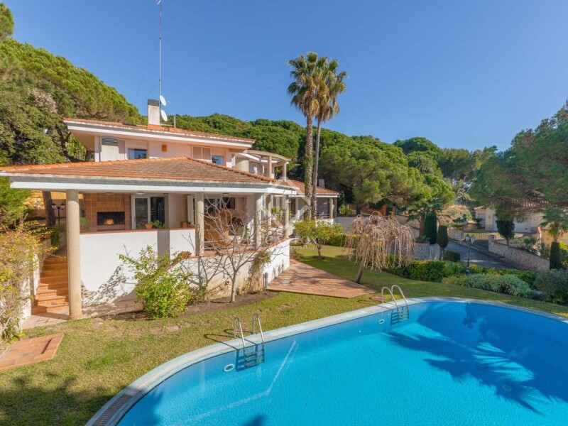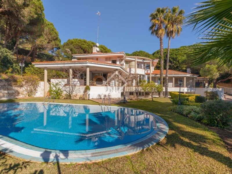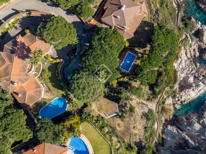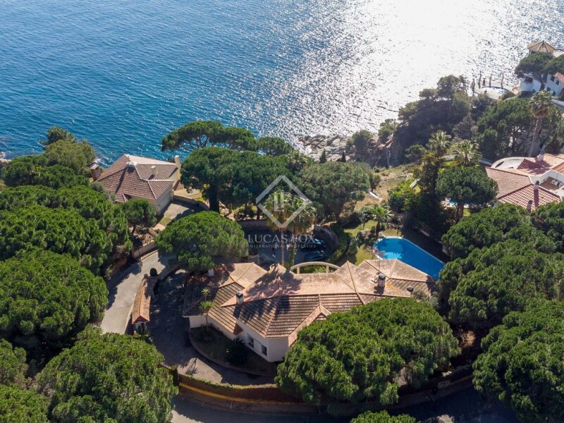 Beautiful villa located on the seafront in the Montgoda development, which enjoys a lot of privacy, and is at the same time very close to the city with its amenities. Within walking distance there is access to the sea via the rocks and the small beach of Cala Tronc. The property enjoys a leafy flat garden, a large swimming pool, part of its own forest, spacious interior and exterior-facing rooms. In the garden we find many fruit trees and flowers of different types. We access the property through a spectacular double-height entrance, which can be reached by car in the style of luxury hotels. From the entrance itself, thanks to large windows, we can see the garden and sea views. On the ground floor, right in the central part, we have a tea room, and on the right-hand side there is a living room with a library and a fireplace and an office with a library. All these rooms have a sea view and enjoy a covered terrace and access to the garden from it. Behind the living room and library, we have a guest bedroom and a complete bathroom. To the left of the living room we have a dining room that continues in the sofa area, then we have a large kitchen. The two rooms in this wing have access to a large open terrace that continues into the summer dining room and barbecue area. Just off the kitchen there is a pantry and a guest bathroom. In the upper part we have an area consisting of 4 bedrooms. The master bedroom, a large master suite with a dressing room. A suite with a small dressing room and a bathroom. And another 2 double bedrooms that share a complete bathroom. There is a laundry chute from the first floor to the basement floor. In addition, there are two stairxases, a main staircase and a staff staircase that go from the first floor to the basement. On the basement floor we have several rooms such as the gym, a play area, cellar, a workshop, storage area and staff apartment. On the same level, we have a garage for 4 cars. Please contact us for further information.