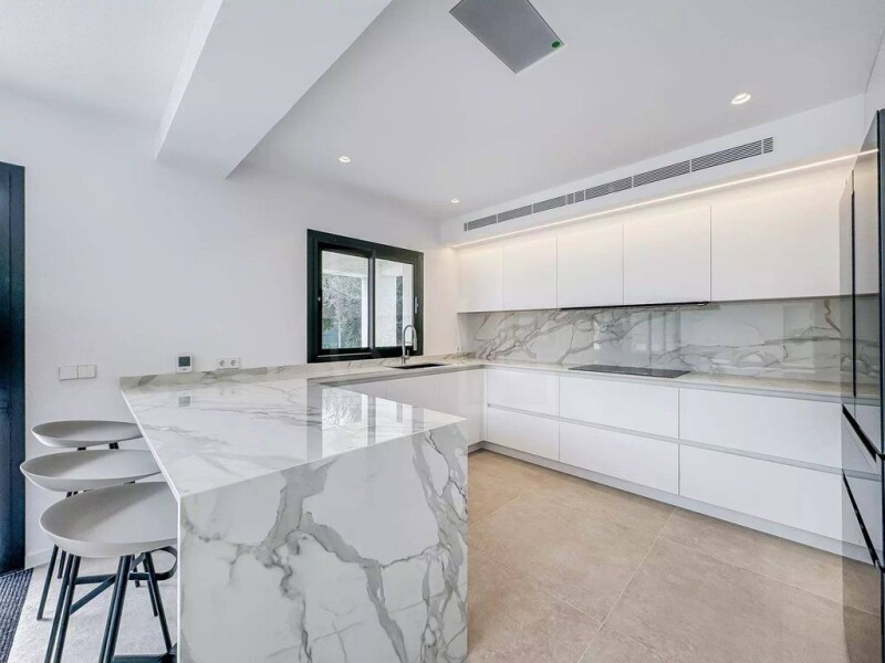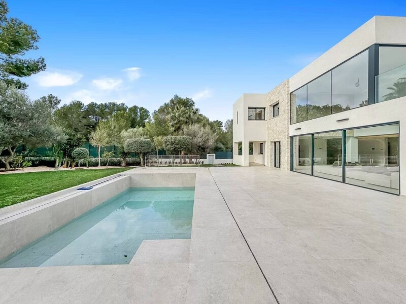 Beautiful Villa located in Santa Ponsa This modern villa has been built to the highest standards, beautifully blending Mediterranean charm with contemporary design. Located in a privileged and tranquil area in the southwest of Mallorca, the villa offers both peace and convenience, making it the ideal luxury retreat. Spread across two levels, the villa features six spacious bedrooms, one of which is wheelchair accessible, and seven elegant bathrooms, including two en suite. There is also a walk-in wardrobe, a luxurious open-plan kitchen fully equipped with top of the line appliances, multiple storage rooms, a laundry room, and a guest WC. The property’s interior is a masterpiece, with exclusive, carefully selected furnishings that perfectly complement the villa’s modern aesthetic. One of the standout features is the impressive garden, complete with a swimming pool and sun terrace, which enjoys a southern orientation, allowing for all day sunshine perfect for lounging or entertaining. The villa is further complemented by a garage with space for two cars and an electric gate, providing the ultimate convenience and privacy. With underfloor heating powered by a heat pump, air conditioning (warm/cold), double-glazed windows, built-in wardrobes, natural stone flooring, and stone elements throughout, this property is the epitome of luxury living on Mallorca.