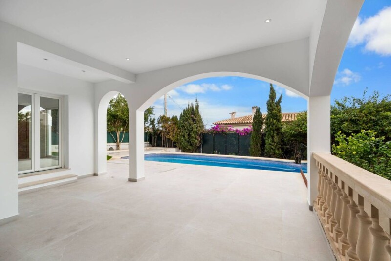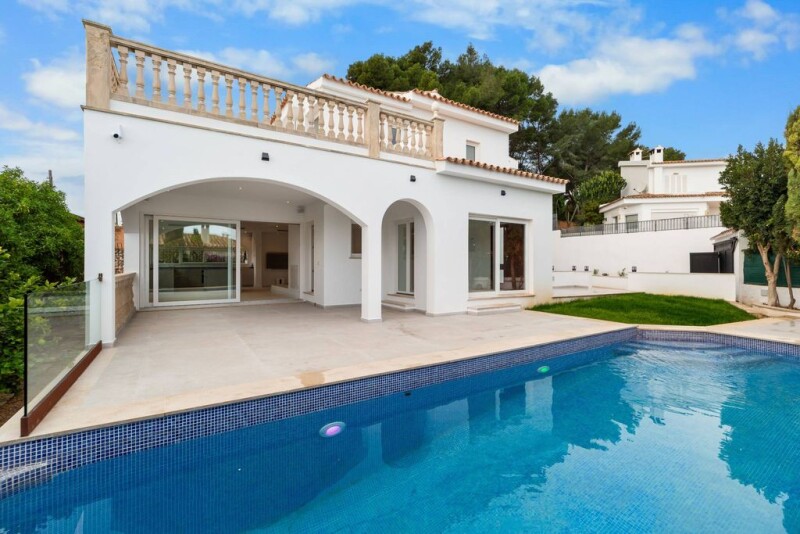 Discover this newly renovated house, ready to move in. The constructed area of the house is 420m2 and it is located on a 600m2 plot facing southeast. The ground floor consists of an entrance hall, an open-plan living-dining room and a Hecker brand kitchen, fully equipped with Miele appliances, a bedroom with an en suite bathroom and a guest toilet. From the living room there is access to the terrace, the Mediterranean-style garden and the pool. The upper floor consists of the master bedroom with an en suite bathroom and a large terrace with unobstructed views of the sea and the Bellver castle, another en-suite bedroom with a bathroom. Additional features: fireplace, Sonos sound system, fiber optics, alarm system, garage for one car, off road parking for two cars. The property is located on the hillside of the town of Génova, where you can enjoy the tranquility, whilst being only 15 minutes from the center of the city of Palma, as well as the beach.