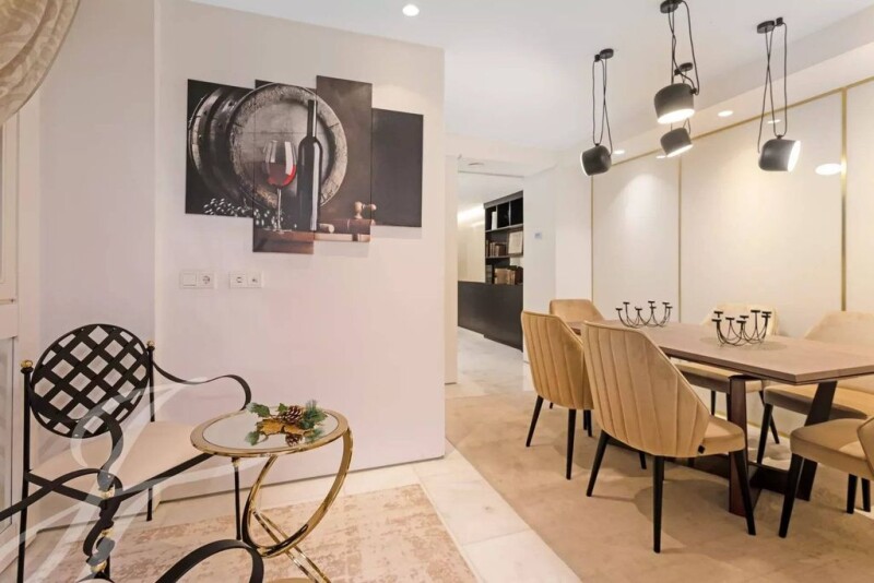 Spectacular renovated and furnished duplex in the center of the neighborhood of Los Jerónimos. One of the best buildings that was completely rehabilitated in 2020 and in which the classic facade, the central patío and the entrance of great historical value have been maintained. Located next to the entrance of the Retiro Park. The property has an area of 240m2 spread over two floors. Top quality finishes. On the access floor a large hall, leads to a double height living room consisting of two rooms and with a wonderful and bright south facing window. Decorated with a fabulous piece of art by Carlos Eduardo Cruz-Díez not included in the price of the house. Sound ambience is Bang & Olufsen. On this same floor dining room, kitchen equipped with high-end appliances and guest toilet. On the upper floor very spacious master bedroom and en suite bathroom with dressing room and study area. Guest bedroom with en suite bathroom. Duplex with two robotized parking spaces and a large storage room. The building has all the energy efficiency measures, integral home automation, gym equipped with the latest generation machines, spa, Turkish bath and swimming pool. Underfloor air conditioning by centralized aerothermal heating and air conditioning ducts. 24-hour security service. The Jerónimos neighborhood, located in the center of the capital, is the most prestigious neighborhood in Madrid. Located in the Retiro district. It is very close to the Paseo del Prado and next to the most prestigious museums and cultural centers: the Prado Museum, Reina Sofia Museum, the Velazquez Palace, the Thyssen Museum, the CaixaForum Museum and the Casa de America.