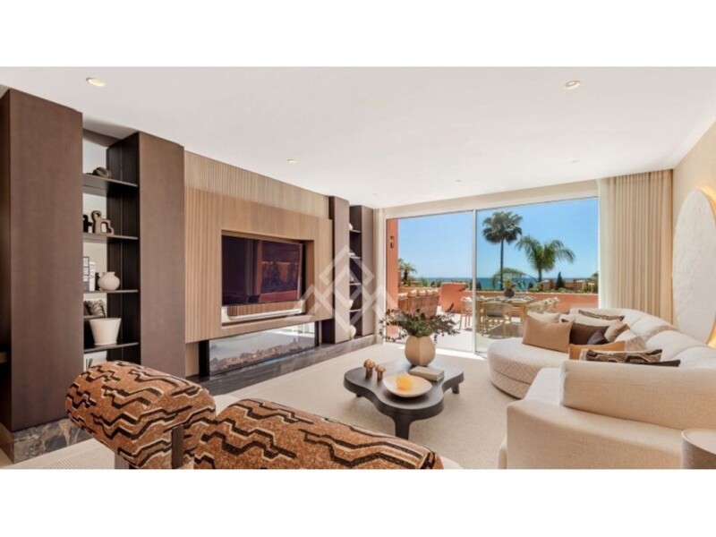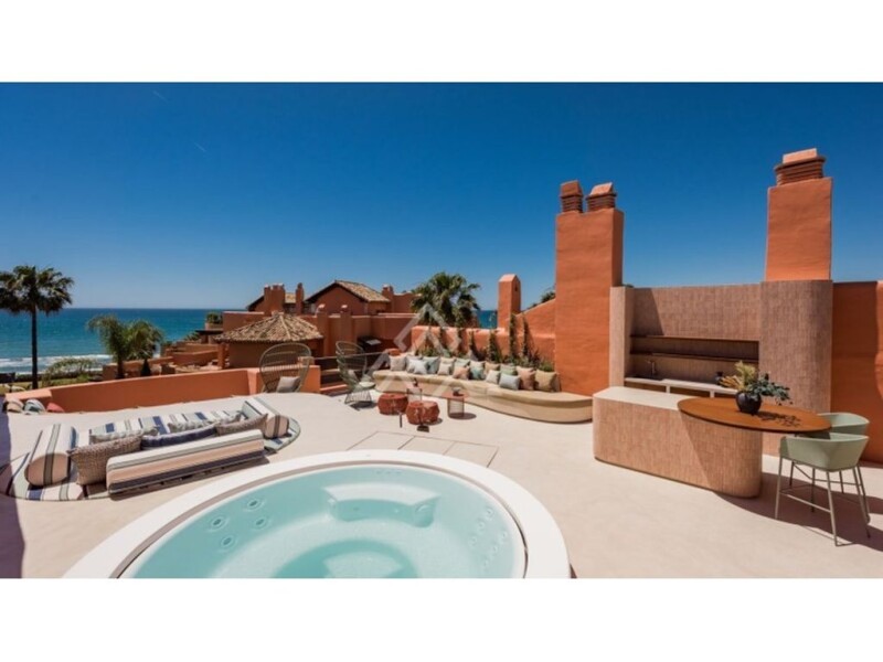 **Luxurious Penthouse with Stunning Sea Views in La Morera, Marbella** This exquisite penthouse offers four spacious bedrooms and five luxurious bathrooms, all designed with high-quality interior decor and elegant furnishings. Spanning over 250 m², this incredible property boasts a generous open-plan layout, providing spectacular views of the sea and lush gardens. The penthouse is equipped with sophisticated features, including elegant flooring, a Siematic designer kitchen with state-of-the-art Gaggenau appliances, an electric fireplace, custom-made wardrobes, a Bang & Olufsen sound system, exclusive Kettal outdoor furniture, and underfloor heating for ultimate comfort. Residents will appreciate the convenience of two underground parking spaces and a storage room. 'La Morera' is a prestigious frontline beach development located next to Marbella's renowned 'Los Monteros' beach and just a few steps away from the famous Trocadero Arena beach restaurant. The urbanization offers 24-hour security, an outdoor pool, an indoor pool, a well-equipped gym, and a magnificent tropical garden spanning 10,000 m², creating an oasis of luxury and tranquility.