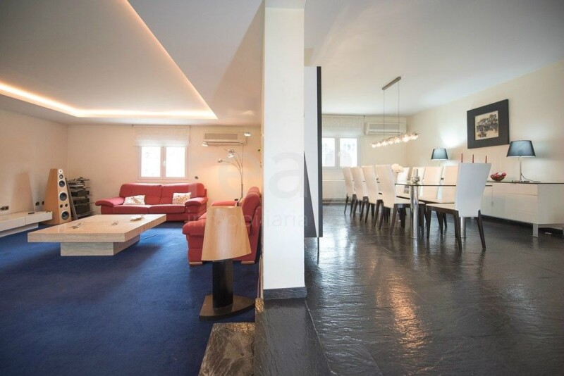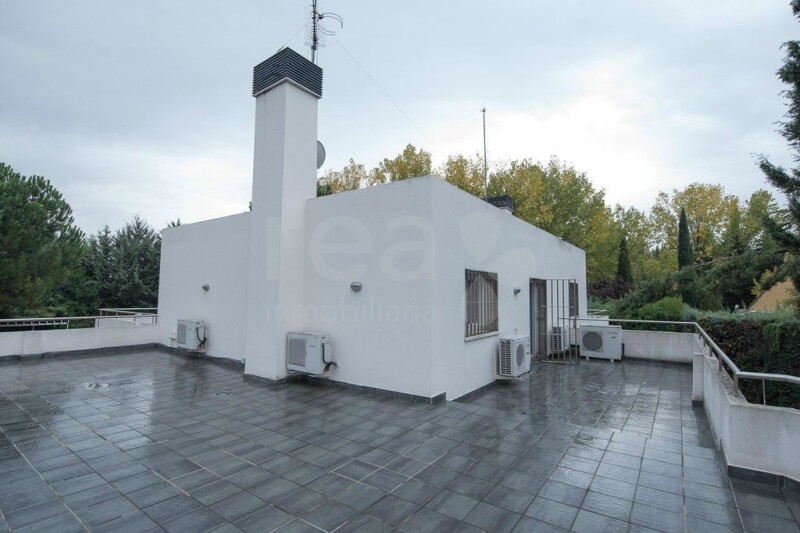 The villa is situated in the urbanization La Moraleja, a luxury residential housing development located north of Madrid, 10 km from the city center and 10 minutes from Adolfo Suarez Airport. Modern detached villa located in La Moraleja with a private swimming pool on a completely flat plot. DESCRIPTION House completely refurbished in 2003. The reform has included good qualities and the spaces are spacious. The distribution is as follows: The ground floor consists of a spacious hall, a courtesy toilet, a living room with a separate dining room with an exit to a nice glazed porch overlooking the pool. The kitchen is of a good size and has an office area, pantry, and laundry room. On this same floor, there is a large master bedroom with a dressing room and a small office or sitting room. The upper floor has three bedrooms, with the possibility of making another one, as one of them is very large and could be divided into two. On this floor, there are two bathrooms. In the basement, there are about 100 m2 distributed in several rooms which could be used as living quarters. In a separate building, there is a closed garage with space for two cars and a storage room. The plot is flat and has a swimming pool and a gazebo. There is a perimeter alarm inside and outside.
