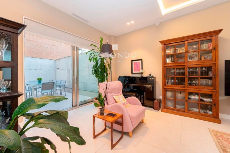 We present you a wonderful house with 5 bedrooms and 5 bathrooms. The house consists of 4 floors, connected to each other by an elevator. The entrance floor is made up of a large living-dining room, from which you have access to the porch of the house, where we have the summer dining room and the private pool of the house. This floor, which is the social area of the house, is completed with a guest toilet and a large kitchen with a pantry. The next floor consists of two bedrooms, the main one with a dressing room and en-suite bathroom and a living area or office, and another bedroom with an en-suite bathroom. The next floor is made up of two other large bedrooms, which share a bathroom, which in addition to the shower has a double jacuzzi. On this floor we can also enjoy a beautiful solarium terrace. The floor minus one houses the service area, with a bedroom and bathroom, as well as other elements that make up a large home; the laundry room, a storage room and another used as a trunk, a large garage and the utility room. In the construction of this house, the energy efficiency of the house has been taken into account. For this reason, the house has been equipped with geothermal energy, solar panels, and a rainwater tank, as well as a device for charging vehicles. This has ensured that energy costs are really very low, being an average of €180 per month, certainly very low for a house of this size and equipment. The house has a very avant-garde design, and has been a finalist in several architecture awards. The façade of the house is smooth and sophisticated, using folded trays of champagne-coloured aluminium on a stone base, also used to finish the floors. The openings are resolved using folded sheet metal frames of the same colour, simplifying the carpentry-shutter-window sill into a single element. In the afternoon, the house emits soft golden reflections over the Colonia Leonesa. The project occupies one of the few corners of the Colonia, facing south, with views towards the golden domes of the Russian-Orthodox Church of La Magdalena. Building regulations require the construction of a compact volume surrounding a small backyard. The project resolves a single-family program on three floors. The staircase becomes the center of the house, organizing a void into which the study-library and the entrance are located. The living room connects the two outdoor spaces: the backyard and the corner garden. The ground floor takes advantage of the street below to house a large garage. The Colonia Leonesa was a group of low-rise houses built in the early 1950s in the eastern Madrid district of Hortaleza. For years, its sunny houses and gardens resisted the pressure of Greater Madrid, whose crowning moment was the opening of the Gran Vía de Hortaleza. Today, the Colonia Leonesa is a lower-density area in an environment of large blocks, which still makes it incredibly attractive. .