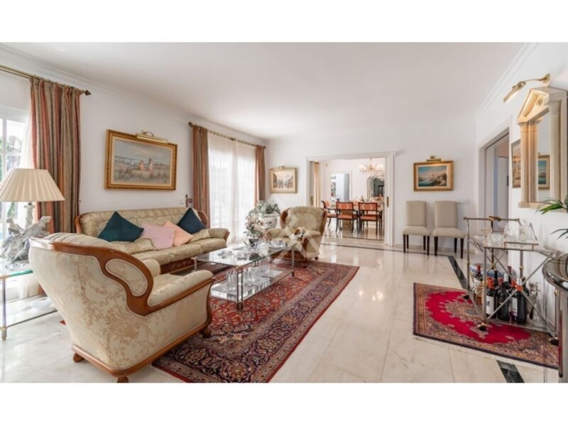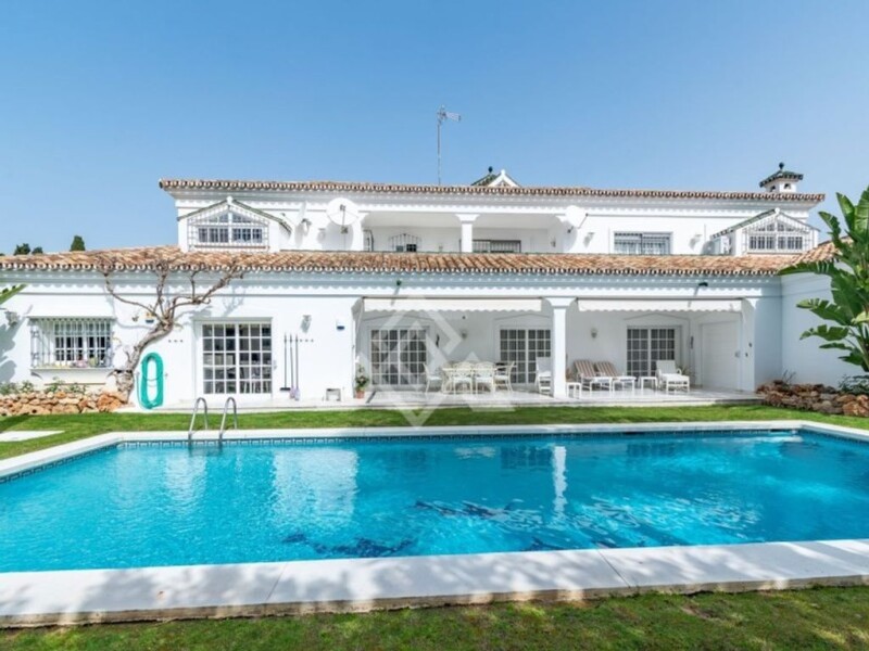 Magnificent classic Andalusian style villa, on the first line of Guadalmina Golf. Built by the current owners, which gives it a very personal touch. An incredible opportunity to acquire a property in one of the most sought-after areas of the Costa del Sol. Built on two independent plots, so there is the possibility of reselling the rear plot and thus recovering part of the investment, in case you do not need so much land. Both have a total of 2300 m2 and 626 m2 built. Distributed over 2 floors. It has a large hall that on one side leads to the spacious living room with direct access to the main terrace, the pool and the enormous garden. On the other hand is the kitchen, fully equipped and independent, with a nice breakfast area. Large adapted office. 5 exterior double bedrooms with built-in wardrobes, 4 full bathrooms, laundry room and storage area, employee room, large garage with 90 m2. A true gem, taking into account the location and the high quality of the finishes. Impeccable condition and maintained to the maximum. Partially renovated bathrooms and kitchen. Without a doubt, it is an ideal property to live in all year round or to invest and subsequently rent out, which guarantees high profitability given the location. Do not hesitate to contact us if you want to know more about this fantastic villa.
