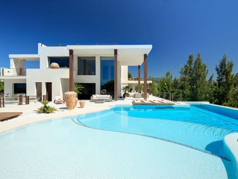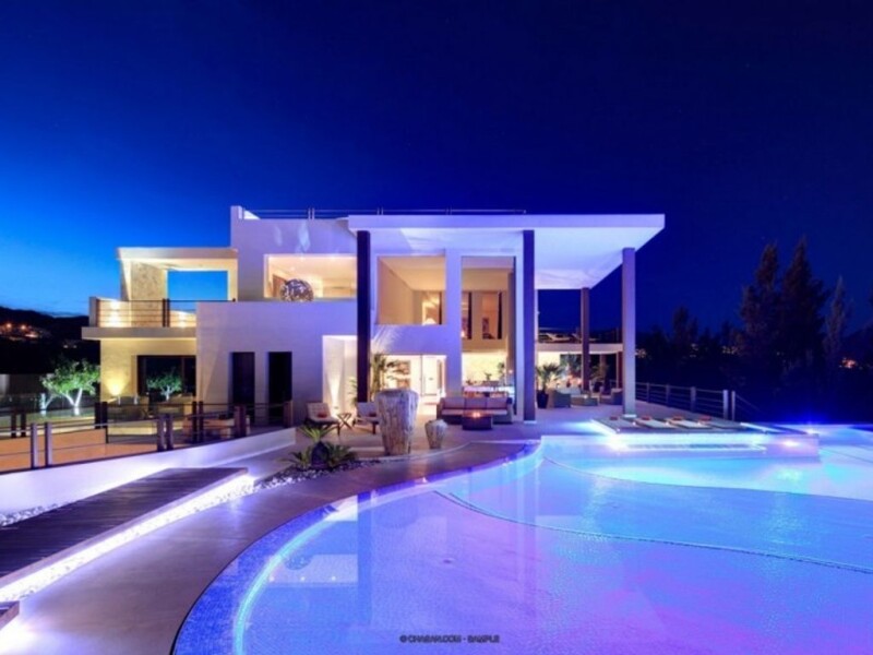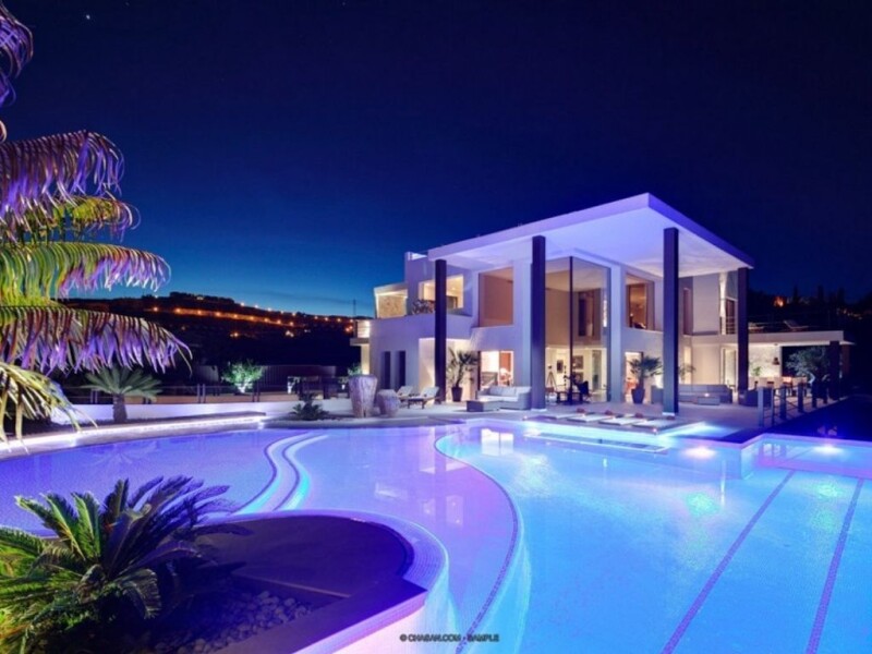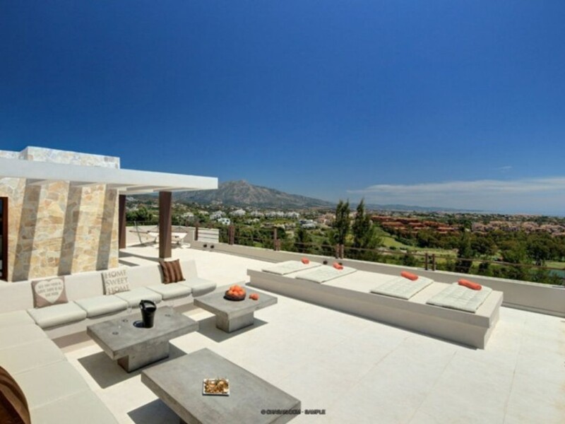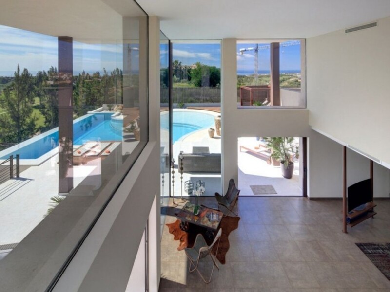 This is a brand new 1.000 m2 designer villa in a frontline golf location with fantastic 360 degree views, built within La Alqueria urbanisation in the stunning hills of Benahavis. Superbly located close to Puerto Banus and San Pedro. A Unique designed villa from the desk of Marbella Architects. Light and bright property with sunny terraces and private gazebo. Watch from your favorite position the fabulous sunrise, Gibraltar, North Africa`s coast line, the mountain, golf course or just the Mediterranean from the SKY Terrace with direct elevator access. Built over three levels with a private roof terrace and glass lift which takes you wherever you want. Many options to enjoy the sun and the sea just outside your windows. A large heated swimming pool with lagoon effect and built in length pool with LED lighting for that extra party feel!! A beautiful and extremely spacious open plan kitchen, dining and living area. Every room has direct access to terraces with 360 degree views. The spacious 140 m2 master bedroom is east facing with views to the mountains, sea and golf, and has a south facing en suite bathroom with walk through shower, dressing area and a terrace with outdoor shower and Jacuzzi. Above this level, the roof terrace offers a space to dine, relax and another outdoor shower. In the lower level, with direct outdoor access (which is not a basement) you can enjoy a 5 star fully equipped “Life-Fitness” gym suitable for working out or for yoga/pilates or just enjoy a drink in the bodega. Garage for 3-4 cars. A truly superb designer party house with amazing views to match!.