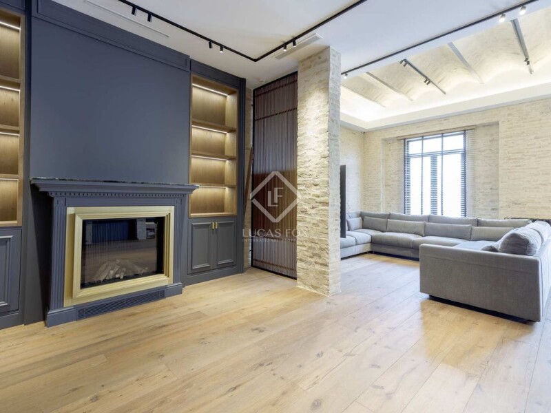 Lucas Fox presents this spacious four-bedroom apartment with brand new luxury renovation in a modernist building on Conde Salvatierra street, Valencia. The property is characterized by having abundant natural light and is very elegant, thanks to its design and the quality of the materials. The property is distributed over a lower floor and an upper floor . The lower floor has four double bedrooms and five full bathrooms. On the upper floor , the service area and laundry room are located. The apartment has been renovated with high-end materials with a very exclusive design. As for the flooring, the property is equipped with solid flooring from the Grato Craft-Old model, with the exception of the bathrooms, utility room and work area in the kitchen. The kitchen is equipped with high-end appliances : an integrated non-Frost freezer from the Siemens brand, a multifunction oven in black glass from Siemens, two integrated dishwashers from Siemens, an induction hob and a gas hob from the Franke brand, a lacquered hood. black Novi brand and an integrated Liebherr refrigerator and wine cellar. The kitchen features furniture from the Santos brand. As for the bathrooms, they have tempered glass screens, Corian shower trays from the DuPont brand in Glacier White, and the furniture is made of wood of different finishes and sizes from the Inbani brand. As for the facilities, it has ducted air conditioning with the possibility of hot or cold air and control and regulation independently from each room. The heating has water radiators throughout the property. Several gas fireplaces are distributed throughout the property, one in the main bedroom, another in the entrance and in the living room-kitchen. The utility room area is equipped and has a dryer and two washing machines from Siemens. Finally, it offers high-end furniture from brands such as Andreu World, Moradillo, Grassoler, Casadesus, Joquer and Viccarbe. This property is ideal for those who want to enjoy an exclusive apartment in the emblematic neighbourhood of El Pla del Remei.