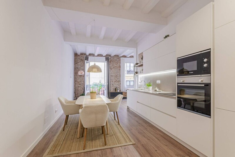 Comfortable and completely renovated apartment in the heart of Barcelona. We have in exclusive, this completely renovated apartment is a building built in 1900 renovated and with ITE passed, a few meters from Plaza Catalunya, Plaza Universitat, Las Ramblas and Ronda Sant Antoni which will be pedestrian soon. Thus, it enjoys an enviable location in the center of Barcelona, with all kinds of stores, services and public transport offer in the surroundings. This apartment is located on the second floor of the building and has 82m2 built interior. The living-dining room is spacious and bright, with integrated kitchen and a nice exit to a balcony, ideal for a drink outdoors. The night area consists of two double bedrooms, one of which is en suite with its bathroom and a balcony overlooking a beautiful and serene courtyard, the other double bedroom shares a bathroom with the day area. The facilities of the apartment are designed for comfort and the optimization of resources and sustainability. Both the heating and air conditioning are supplied through ducts. The kitchen is equipped with Bosch appliances, including an integrated washer-dryer. This building has a very nice renovated communal solarium terrace on the roof.