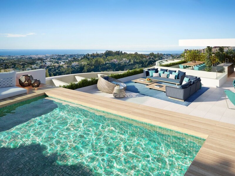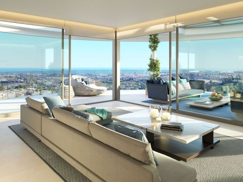Modern penthouse with spectacular panoramic sea and coastal views, in an exclusive residential complex in Benahavis. From its elevated position just above Marbella’s emblematic Golf Valley, the courses of Los Naranjos, La Quinta, Las Brisas and Aloha are at your doorstep. Modern apartments with large terraces, designed for you to experience luxurious and contemporary living in an exclusive location. The buildings are beautifully integrated within the natural surroundings and take full advantage of the amazing views. Every floor plan has been carefully studied to optimize the use of our generous internal spaces and natural light, to enjoy the stunning views, as well as to ensure the privacy of each home. The latest technologies will guarantee your full comfort and make you feel at home. Two parking spaces and a storage room are included in the price.