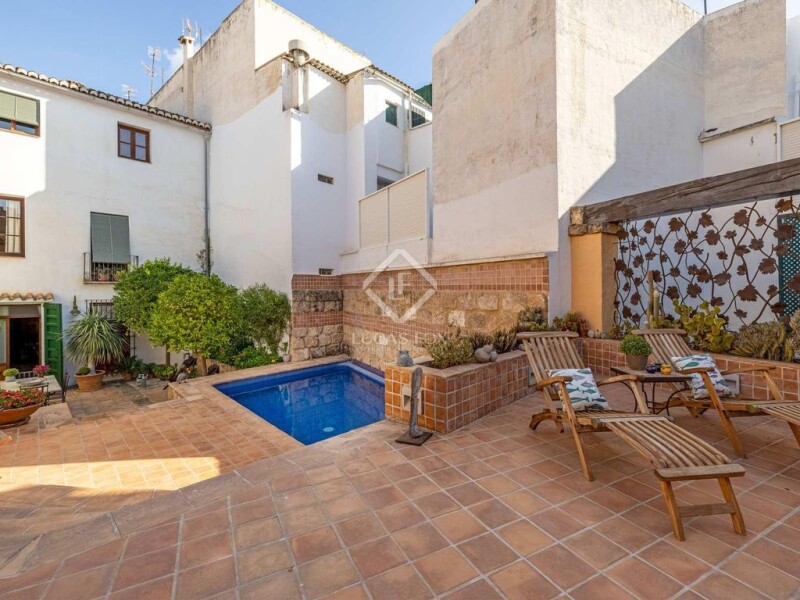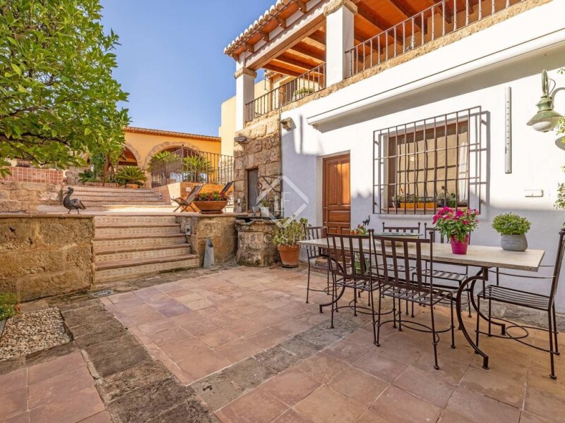 Unique opportunity to purchase the rarest of jewels; over 1,100m2 of prime located property, in the centre of Jávea’s historical centre. Currently distributed across various properties to include: a charming townhouse, measuring over 500m2, private terraces with sea views and swimming pool, 2 commercial units and 2 apartments. This charming townhouse, complete with superb terraces and swimming pool, 3 arch naya terrace with sea views, and a 5-car garage is a regal estate in itself. The main accommodation can be accessed either via the integrated garage, or at street level, which offers convenient access to the local markets and restaurants on foot, and to arrive comortably by car. The living space is distributed predominately over 3 levels with lift shaft space avilable to offer private elevator access between them. There is a wide reception hall, historically used for carts and animals to enter, a private office space, incredibly spacious reception room, with two seating areas and dining area, all of which flows wonderfully on to the vast terraces to the southern aspect of the property, and which also has convenient access to the kitchen and utility space. The incredibly private terraces are a stellar element to this home, offering comfortable outdoor dining and seating areas to enjoy throughout the year. The sheltered courtyard, with mature bitter orange trees provides a warm, sunny spot in winter, and the 3-arch naya terrace, built using the original tosca arches, offers a huge dining area, and cosy seating area, with views across the Javea skyline to the sea and enjoys the cool, southern breeze in summer. The terraces surround a superb swimming pool, with counter current for excercise and natural stone and terracotta feature wall. For guests, there is a dressing room adjacent to the swimming pool, with showers, WC and changing area, plus a separate laundry room and hidden drying terrace to ensure that guests have every commodity available to them. The first floor of this property consists of the family accommodation, with three double bedrooms, and two bathrooms, including a majestic master suite with bedroom, dressing room, bathroom, sitting room, and access to a wonderful covered terrace complete with wooden decking, and which overlooks the terraces. There is a second family bathroom also on this level for the rest of the family. The second level of this property could be made entirely independent as it benefits from a private street access, including garage space for a motorbike. This area would have historically been used as the ¨Cambra¨, the attic space where farming instruments were stored and the grapes were dried. It has been wonderfully converted into a double height open area, with feature rounded windows, living and dining areas, balcony, bedroom, bathroom and kitchen, plus a wonderful open-plan area with access to a an office space and small second bedroom. The property benefits throughout from high ceilings with beam and barrel feature, the use of local traditional materials such as the tosca stone walls and arches, and marble floors. The rooms are spacious and retain the heat and the cool, depending on the season, due to the incredible solidity of the walls and the oil-fired central heating. For keen investors who appreciate charming and characterful properties, or anyone looking for additional space; also available to purchase are two independent apartments which can be integrated into the main house. There is a 3-bedroom 2 bathroom apartment and a 2-bedroom, 2 bathroom apartment; each with independent access and private patios. There are also two independent commercial units. Both the apartments and commercial units offer an interesting investment option, with excellent rental yields, and can be purchased conjointly for an additional 550,000 EUR. These properties can be integrated within the main property, or redistributed and sold off independently if required. In addition to the one-of-a-kind roof terrace, the large garage with huge storage area and parking for various vehicles is an unusual and highly sought-after feature in the heart of the Old Town. An exceptional and highly unusual townhouse that would be an ideal home for any generation or family size, or also a very interesting investment opportunity with the various separate rental incomes available.