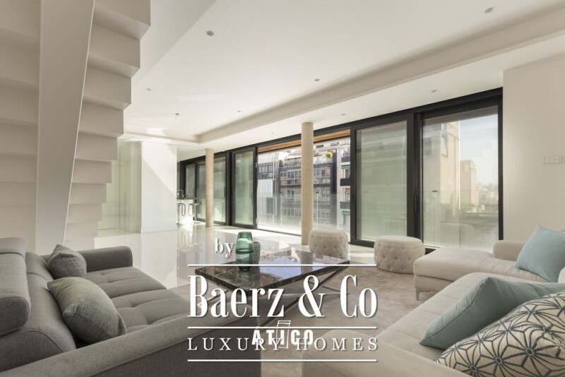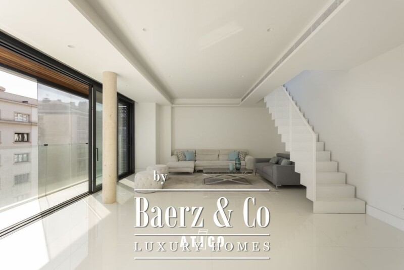 This modern and exclusive duplex penthouse is located just a few metres from Avenida Diagonal and Paseo de Gracia. It is a new construction that was built with luxury finishes, creating spacious, functional and safe spaces. The building has a concierge service and video surveillance, parking and storage rooms in the same building. For the relaxation of clients, it offers a beautiful and quiet communal area with a large solarium and swimming pool. The duplex penthouse has a total area of 201m2 of which 130m2 corresponds to the living area, 11m2 of a large and continuous balcony with unobstructed views of Via Augusta and 60m2 of a solarium terrace with a private swimming pool located on the upper floor. It consists of a large living room with high ceilings, floor-to-ceiling windows that give a feeling of spaciousness and provide plenty of natural light; an independent and fully equipped kitchen and a guest toilet with an integrated laundry area. The night area has 3 bedrooms and 2 bathrooms. The master bedroom suite includes a private bathroom and a large dressing area. The other 2 double bedrooms share a separate bathroom. Via stairs from the living room, or directly from the building's elevator with an exclusive access key, we access the jewel of this penthouse, its solarium terrace with a private pool - an urban oasis. It is the perfect place to enjoy the Barcelona climate, have family or friends gatherings, or moments of individual relaxation. The modern design creating spacious and functional spaces has allowed this property to have natural light during the day, it has a home automation installation, an aerothermal system for cold and heat through ducts in the ceiling, porcelain floors, double-glazed aluminum enclosures that insulate thermally and acoustically, a Bullthaup kitchen with NEFF appliances and LED lighting throughout the property. Parking spaces and storage room are not included in the price. The building is located in a residential area, one of the best areas of Barcelona, near Paseo de Gracia and Rambla Catalunya. It has good public transport and shops. Please do not hesitate to contact us to schedule a visit and obtain more additional information.