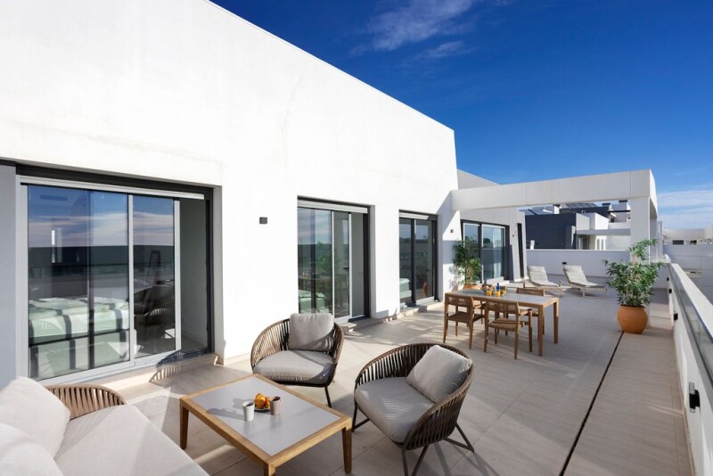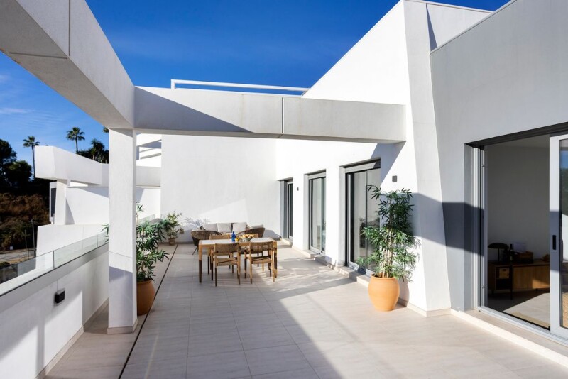 Modern apartment with sea views, in an unique complex with apartments and penthouses with large terraces, nestled on a scenic hill and offering an exclusive sense of privacy. The property has everything necessary so you can just move in, plus the building specifications include high quality materials and finishes with an original Mediterranean style interior design. The complex is gated, with private access to ensure security and peace of mind for its residents. It offers delightful, gardened areas and a designer communal pool with a solarium area and showers.