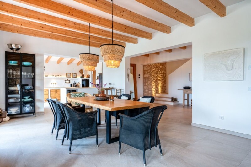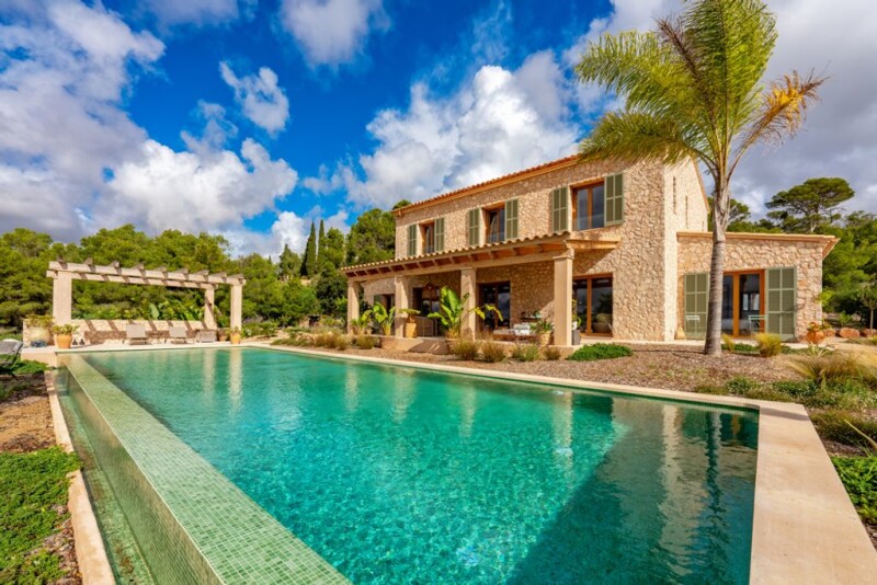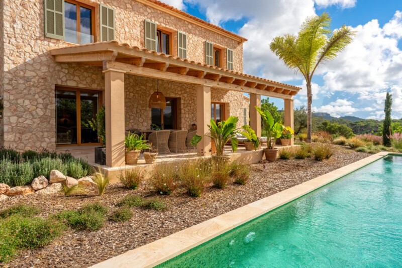 Nestled in the tranquil hills of Son Prohens in the center of the island of Mallorca, this newly built 320 m² finca offers an incomparable living experience with breathtaking panoramic views of the picturesque landscape and the sea. This property harmoniously combines modern living with plenty of nature and offers an ideal retreat with plenty of privacy and for a typical Mediterranean life. Sublimely situated on a hill, the finca offers a spectacular view of the green valley below and the sparkling sea beyond. The spacious terrace by the infinity pool is perfect for enjoying magical sunsets and unforgettable moments. The centerpiece of the finca is the light-flooded living and dining area. An open floor plan with a cozy fireplace offers an inviting atmosphere for cozy days and evenings. Adjacent to this is a modern kitchen with high-quality equipment, a cooking island and a utility room. The finca offers 4 spacious bedrooms with en-suite bathrooms, providing comfort and privacy. All rooms are equipped with air conditioning to ensure a pleasant climate all year round. Modern technology such as underfloor heating, operated by a heat pump and solar energy, result in an energy-efficient, cost-effective use of your new home. The country house is situated on a large plot of approx. 17,126 m², which is beautifully designed with palm trees and a variety of Mediterranean plants. The quiet surroundings create an oasis of calm. The 5 x 15 m infinity pool blends seamlessly into the horizon with magnificent views of the green surroundings. This extraordinary finca in Son Prohens offers a rare opportunity to own a piece of paradise in Mallorca. With its breathtaking views, luxurious amenities and peaceful surroundings, it is the perfect home for those who value privacy, comfort and the beauty of the Mediterranean. Do not hesitate to contact us to learn more about this extraordinary property! The energy certificate is in the works. Do you have any questions about the facilities or would you like to view this property? Ms. Waltraud Ruth Salpius will be happy to answer your questions on +43 676 43 24 427 or w.salpius@muhr-Immobilien.at According to the sales contract, the seller bears the brokerage commission. We explicitly point out that we work with regional partner companies in certain European markets! All data has been collected with care. Figures may be rounded or estimated. The client is responsible for the accuracy and completeness. We do not assume any liability for errors on various websites/portals that may result from faulty data transmission.In the past, Felanitx was an industrial town, and even today you only have to walk through the streets to see the importance it had in the past. The small town is not overrun by mass tourism and still lives the real Mallorcan everyday life. Currently, the population is made up of Mallorcans, mainland Spaniards and a growing number of foreign residents. Every Sunday, a large market takes place with many stalls along the central streets. The nearest beach can be reached in about 15 minutes. The 18-hole golf course Vall d'Or is located at a distance of about 10 minutes by car. The island's capital Palma and the airport can be reached in about 40 minutes.