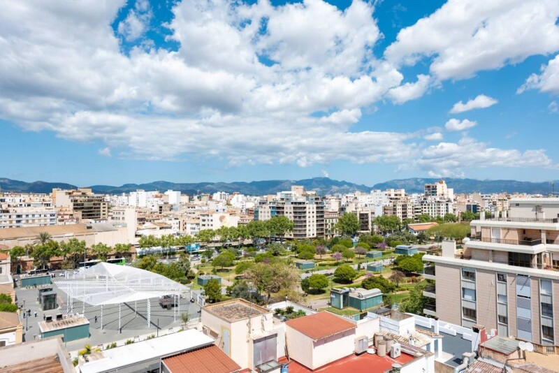 A penthouse is for sale in the city center, just a minute walk from Plaza España. This penthouse is located on the tenth floor and has been completely renovated in the year 2023, so it features a modern and functional design. It has an area of 168 square meters and also has a terrace of 13 square meters. The space is divided into a spacious living-dining room with an open and equipped kitchen, four double bedrooms, one single bedroom, four bathrooms, and a laundry room. The property has separate cold/hot air conditioning, double glazed windows, low community fees, a water softener, sound insulation, and an elevator. This penthouse is ideal for year-round living, as it is located in an area with all necessary services just two minutes' walk away. If you are looking for a property in the center of Palma, this penthouse is the key to your future home. Don't miss the opportunity to visit it!.