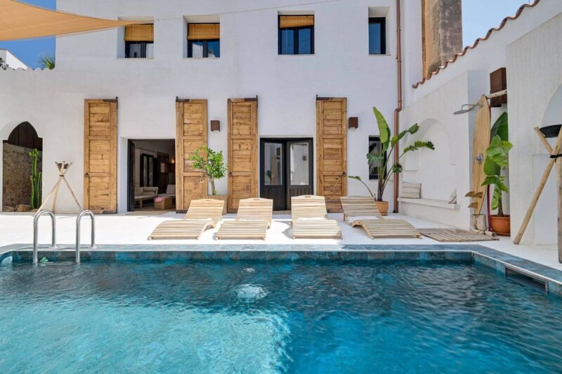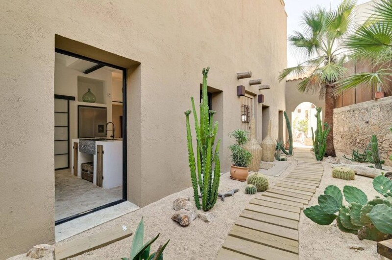 BARNES Costa Brava presents this stunning and exclusive village house, originally built in 1901 and exquisitely renovated in 2024. This property masterfully blends modern and traditional elements, characterized by an unusual and exotic style with high-quality finishes. Located in the heart of the beautiful village of Sant Feliu de Guíxols on the Costa Brava, it is just a 10-minute walk from the beach and the bustling village center, filled with bars, restaurants, and shops. The house, measuring 285 m², is distributed over two floors, in addition to a rooftop terrace with sea views. This property is a true hidden gem in the heart of the village, an idyllic spot that evokes the exotic atmospheres of Tulum or Bali. Access to the property is through a hallway adorned with exotic plants and sand, leading to a wonderful courtyard with a turquoise blue pool. The interior of the house is minimalist, with modern elements fused with antique pieces such as majestic wooden doors, beautiful beams, and local natural materials like tree trunks converted into decorative elements and stone sinks. On the main floor, at street level, you enter a large space that houses the American kitchen with an island, the living-dining room with garden access, and the living room with pool access. This floor also features a spacious suite with a walk-in closet and private bathroom, offering direct access to the courtyard with a pool, as well as another double bedroom with an adjacent bathroom and a convenient guest toilet. Ascending to the upper floor, you'll find three bedrooms with high ceilings and large windows that let in plenty of natural light. All bedrooms are equipped with hot/cold air conditioning, built-in wardrobes, and private bathrooms. On this same floor, there is a toilet and a cozy, intimate living room overlooking the pool. A wide metal staircase leads to a rooftop terrace with sea views, decorated in Moroccan style, with a chill-out area and a barbecue area. This house is truly unique in its style and character. The combination of its privileged, central location and the privacy it offers is its strongest asset. The house also includes a large street-level garage with space for one car. BARNES Costa Brava offers you the opportunity to purchase this extraordinary property and is at your full disposal to address any questions you may have. Contact us for more information.