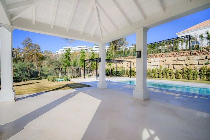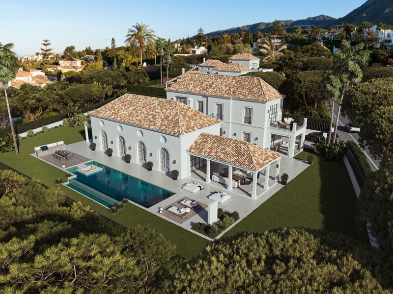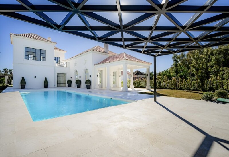 Located in the esteemed neighborhood of Nueva Andalucía, it is a testament to incomparable luxury. This exquisite property, with its classic architecture reminiscent of the French provincial style, adorns the heart of the Golf Valley, just minutes from the prestigious Los Naranjos de Marbella golf course. Located in a privileged position, it represents the epitome of elegance and sophistication. A personal oasis, it is designed around a South of France-style courtyard adorned with olive trees and lavender, evoking a refined resort atmosphere. Manicured gardens, outdoor seating areas and covered porches provide ample space for entertaining, while a large pool invites respite during misty summer days. Inside, it has high ceilings. The well-equipped kitchen, with quality appliances and ample storage space, extends seamlessly into an outdoor seating area and barbecue space, offering versatile culinary options. Spanning three levels, this villa consists of five bedrooms, each adorned in neutral tones and with a quality aesthetic. The master suite, which occupies the first floor, is a masterpiece of opulent furnishings, intricate interior design and high-quality woodwork. The remaining bedrooms, strategically distributed on the ground floor and basement, offer stunning views of the meticulously landscaped garden. The basement is a spectacle of luxury living and entertainment. A spacious leisure room features a stylish bar area, a home cinema with a state-of-the-art sound system and a climate-controlled gym, ensuring maximum enjoyment for its lucky residents.
