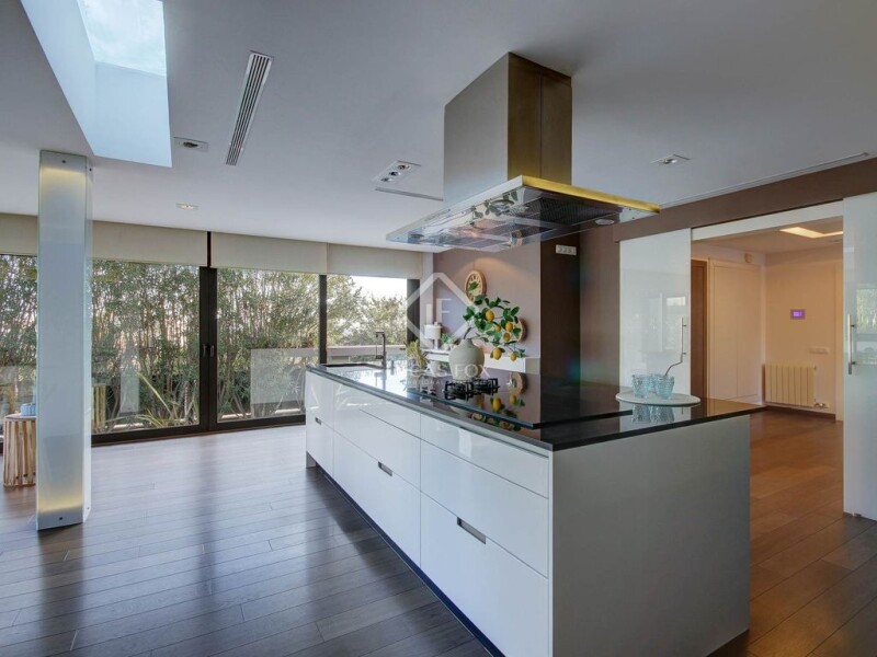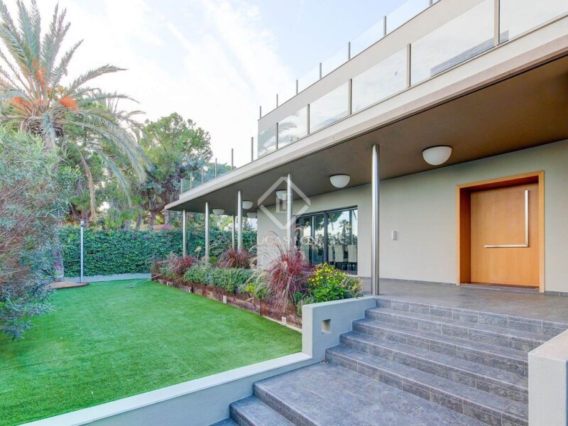 This well-designed villa has undergone complete renovation in the last decade and is located on a flat plot of almost 1,000 m². The house is built with high-quality materials and finishes and offers open spaces that connect the exterior with all areas of the home. Upon entering the house, you are greeted by a spacious entrance hall that distributes the living space. To the left, you will find the main living room, which is spacious and bright. It has a fireplace and access to the garden and swimming pool. The kitchen diner, located to the right of the entrance hall, is open to the exterior and has all the amenities you need to enjoy it. There is also a double bedroom, a full bathroom, and a main bedroom with its own bathroom. In addition, there is a laundry room and a garage. Upon climbing the stairs, on the first floor, you will find four bedrooms, all with their respective bathrooms. Two of the bedrooms are main suites, with their own en-suite bathroom, dressing room, and private terrace with views of the sea. The other two bedrooms are en-suite double bedrooms. On the top floor, there is a terrace with unbeatable views of the sea and all of Sitges. This terrace is ideal for creating a lounge area. The villa enjoys a private swimming pool with a chill out area set up for an outdoor cinema and entertainment. This modern home offers the latest in home technology: indoor and outdoor alarm system, surround sound movie system, underfloor heating and luxurious finishes throughout. The villa is located within the Vallpineda residential area, which is highly sought-after for its excellent sports facilities including a tennis club, paddle tennis courts, a swimming pool and gym. There is also an international school and 24-hour security, making this residential area an ideal choice for families. Please contact us for further information.