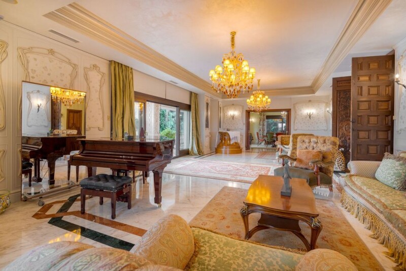 Stunning villa for sale on the Golden Mile, Marbella This stunning villa is located in the prestigious area of Los Picos, Marbella Golden Mile, in the beautiful city of Marbella, Malaga. Situated on a spacious plot of 4,869m², this luxurious property offers a generous living space of 1,163m², making it perfect for a large family or those who love to entertain. The villa boasts 8 bedrooms, each with its own en-suite bathroom, providing ample space for everyone. The living areas are exquisitely designed, featuring marble floors and a fireplace, creating a warm and inviting atmosphere. The villa also has a dining room, ideal for hosting formal dinner parties. For those who love to relax and unwind, this property offers an array of amenities. You can enjoy a soothing soak in the jacuzzi or take a refreshing dip in the private heated pool while enjoying the breathtaking views of the sea and mountains. There are also covered and uncovered terraces where you can bask in the Mediterranean sun or enjoy al fresco dining. Other notable features of this villa include a basement, perfect for a home gym or cinema room, a storage room for all your belongings, and a wine cellar for wine enthusiasts. The property is equipped with air conditioning, an alarm system, and glass doors, ensuring comfort, security, and energy efficiency. Situated in a gated community, this villa offers privacy and tranquility. It also has a private garden and a barbeque area, perfect for outdoor gatherings. The property also includes a garage and a lift for added convenience. The location of this villa is ideal, as it is close to the sea, beach, shops, town, and schools, making it convenient for daily activities. With its luxurious design, stunning views, and exceptional features, this villa is truly a dream home.