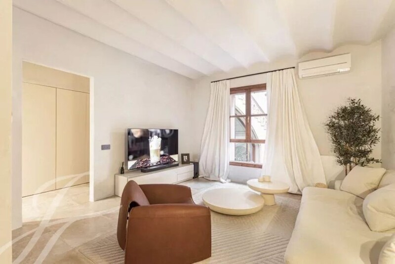 This gorgeous ground-floor apartment has 81 sqm of superficie and was completely renovated in 2022, incorporating gas central heating via radiators, and A/C in the living/dining room and bedroom. Underfloor heating has been incorporated into the bathroom area. A custom-made fully fitted kitchen together with new flooring and bathroom. Situated in a beautiful building dating back to 1900, with a stunning Mallorcan interior patio, which leads to the apartment. upon entry one is impressed by its loft-styled open salon living/kitchen area with a large island. The apartment is flooded with natural light through the large windows and a separate spacious bedroom with an elegant bathroom. The apartment comes with a comfortable parking space included in the price. One of the best-preserved old towns in Spain featuring the most amazing Gothic architecture in the Mediterranean surrounded by hundreds of narrow streets, excellent shopping, great restaurants, art galleries, museums, and amazing ancient passages leading to important historic monuments, landmark buildings, and the jewel of the crown: Catedral Santa Maria, La Seu. It is very popular for the nightlife and offers very trendy places to visit, like Passeig del Born, Avenida de Jaume III, Passeig de la Rambla, La Llonja and some of the most visited “Plazas”, such as Plaza Santa Eulalia, Plaza Cort, Plaza Mercat and Plaza Mayor among others. Casco Antiguo is one of the most desirable districts for property investment. Many of them have been renovated over the past few years and turned into luxury apartments, fitted with all the modern amenities.