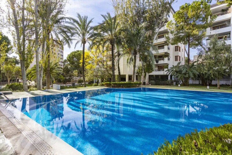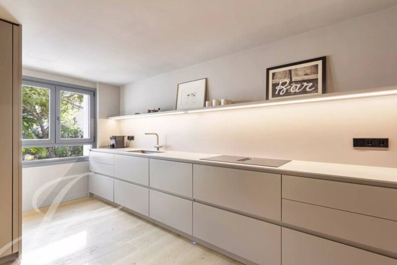 This beautifully reformed apartment is nestled within a well-established community in Palma, featuring lush, mature gardens, a saltwater pool, tennis court, and a playground for children. Located in a peaceful residential area, the property offers easy access to public transport, shops, restaurants, a pharmacy, and sports facilities—all within a 5 to 15-minute walk. Recently renovated to the highest standards, the apartment boasts premium finishes, including new electrical installations and plumbing. The spacious open-plan living, dining, and kitchen area was designed by an architect and interior designer with a focus on maximizing functionality, storage, and aesthetic appeal. The living space flows seamlessly onto two terraces, one of which is designed as a "Winter Garden," offering the perfect retreat during cooler months. The sleek, high-end Italian designer kitchen is equipped with top-of-the-line Siemens appliances, including a wine cooler and a faucet with a dual water outlet for filtered drinking water. Additional features include natural oak flooring throughout, custom oak paneling in the living room, and brand-new windows with thermal and acoustic insulation, complemented by electric shutters for added comfort. The private sleeping area is accessed through a door cleverly integrated into the built-in cabinetry. The master suite offers a spacious bedroom, a walk-in closet, and a luxurious en-suite bathroom. The second and third bedrooms have been merged into one large room, but can easily be reconfigured if desired. The apartment also includes a modern guest bathroom and a secure garage parking space. This exceptional apartment is perfect for those seeking a stylish, functional living space in a prime Palma location. Son Armadans takes its name from the noble family of Armadans, which died out in the 16th century and was a well-known part of the Mallorcan nobility. You can still admire part of their estate, easily recognisable by the round tower next to another rectangular tower that stands at the junction of Pilar Juncosa and Almirante Gravina streets. This quiet and stately neighbourhood is bordered by Santa Catalina, Paseo Maritimo, Bosque de Bellver, El Terreno and Son Espanyolet. This already says a lot about its privileged location. Add to this the wide and leafy streets, the proximity to prestigious international schools, Bellver Park and the yacht clubs of the Paseo Maritimo, and you can see why the neighbourhood has always been so sought after. Situated between Palma's two booming districts, Santa Catalina and El Terreno, it was only a matter of time before Son Armadans became the object of desire for those who crave a relaxed lifestyle in a privileged setting, close to everything yet completely independent. Numerous high-end developments between Avenida Joan Miró, Calle Castillo de Bellver and Calle Son Armadans itself, testify to a development that claims the qualification of "Palma's best residential area".