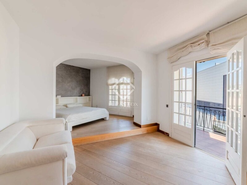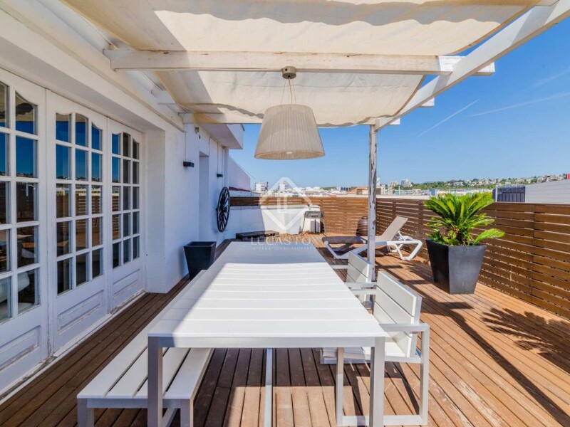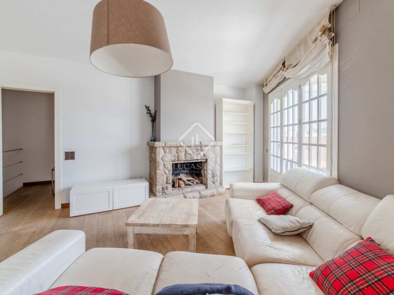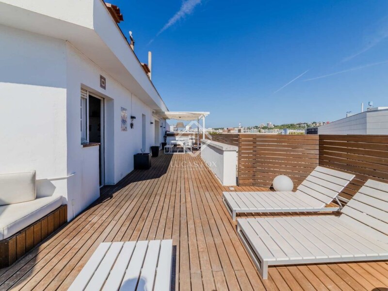 A comfortable lift takes you to the door of this property. It is a corner penthouse with 2 floors, enjoying views stretching out as far as the Garraf hills and the central streets of Sitges. On the lower floor (third floor) we have two double bedrooms, one of which has an en-suite bathroom with a shower and whirlpool tub. On this same floor we also find an office with access to one of the terraces and a bathroom. On the upper floor we find a large living room with a fireplace and access to the terrace of 52 m² (teak floor, dining area and space for sunbathing), a separate kitchen with white lacquered finishes and access to the terrace, and a toilet. This wonderful penthouse is in the centre of Sitges, near the station, stores, restaurants and all the services of the town. One of the best locations in Sitges and in a building with only 3 neighbours. Contact us to arrange a viewing of this duplex penthouse for sale in Sitges.