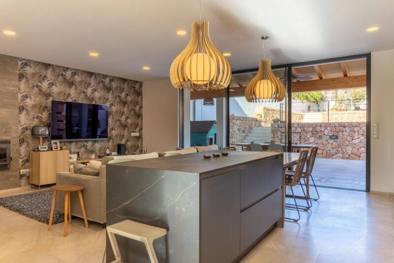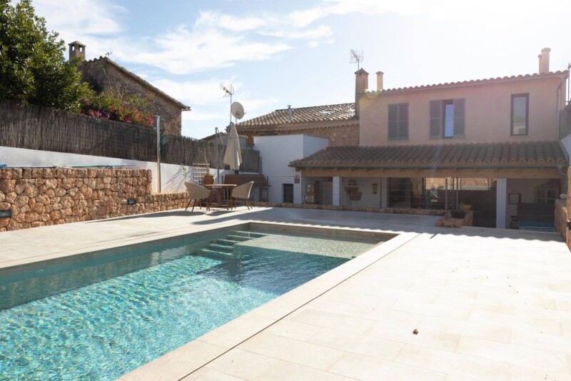 This property is located in the serene and charming area of Portol, close to Marraxí. This recently renovated, Mediterranean-style townhouse offers a magnificent view of the surrounding mountains, providing a peaceful and unique experience. The interior features 4 bedrooms and 3 bathrooms, which are practical and elegant, combining high-quality materials such as wood and natural stone floors with modern appliances in a well-considered layout. The property boasts a 30 feet by 10 feet swimming pool, a garden with fruit trees, a barbecue area, a utility room, and visible beams, which add a special atmosphere. The aluminum climate windows allow natural light into the rooms, creating a warm and welcoming atmosphere. In addition, the gas central heating, the fireplace, and the air conditioning (hot/cold) via wall units ensure comfort in every season. Furthermore, the property is in an excellent location with direct access to local amenities and a vibrant community. From its stylish interior to its carefully curated selections, this residence offers an exclusive lifestyle in one of Marraxí's most sought-after areas.