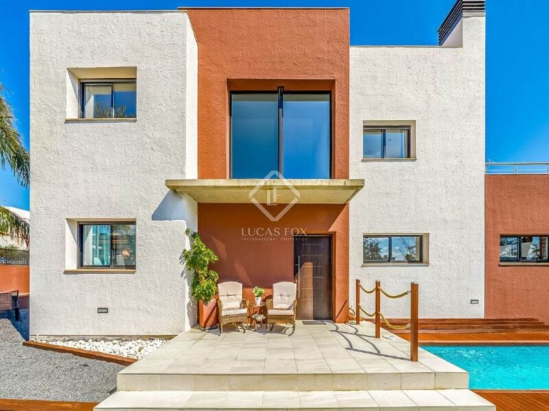 Located in the serene heart of La Llosa, just steps from the beach, Lucas Fox presents a residence where time slips between the murmur of the sea and the harmony of the design. This 279 m² property with a private pool displays a masterful balance of Mediterranean light and understated elegance. A refuge where the sun intertwines with its open spaces, designed for relaxation and inspiration. The open-plan living-dining room includes a fireplace and is surrounded by large windows that bring in natural light and access to the garden or pool, inviting you to relax. The room flows into a contemporary kitchen, crowned by a versatile island: the ideal setting for vibrant breakfasts or sunset cocktails. From here, you can access a terrace where lunch will be tinged with gold under the Costa Dorada sky. The double-height hall connects to the upper floor via a beautiful staircase, illuminated by a generous window, and home to a multipurpose study space. This space was originally designed to be closed off to create another bedroom. At the same time, this open-plan space extends to the remaining rooms. The master suite, a sanctuary of functional luxury, includes a bedroom with a large separate dressing room and a sophisticated bathroom. The bedroom also opens onto the terrace and sea views, ideal for more intimate evenings. Another sun terrace is located on an upper level. A perfect setting for your celebrations under the stars or at sunset, where the blue horizon blends with the sky and the sea breeze caresses every moment. Another suite with a bathroom offers uncompromising comfort. Originally, this floor was designed for four double bedrooms and two bathrooms. Currently, there are three separate bedrooms, and it would not be a problem to add a fourth bedroom. The garden is very pleasant, surrounded by neutral colors and textures. Practical and adorned with natural wood surrounding the pool, it is sophisticated with its shrubs, Mediterranean plants, and beautiful palm trees that exude tranquility. The built-in barbecue promises elegant gatherings without ostentation. The pool is modern with clean lines and two strategically placed lounge chairs await your moments of serenity or romantic intimacy. This level also features a discreet and cozy double bedroom , a bathroom , and a garage, large enough for two vehicles, as well as a utility room area that combines practicality and space for essentials. Lucas Fox invites you to discover the art of living at La Llosa Beach, with comfort designed for those seeking proximity to the sea, intimacy, and spaces that celebrate the light and silence of their surroundings, with the murmur of the waves as background music.