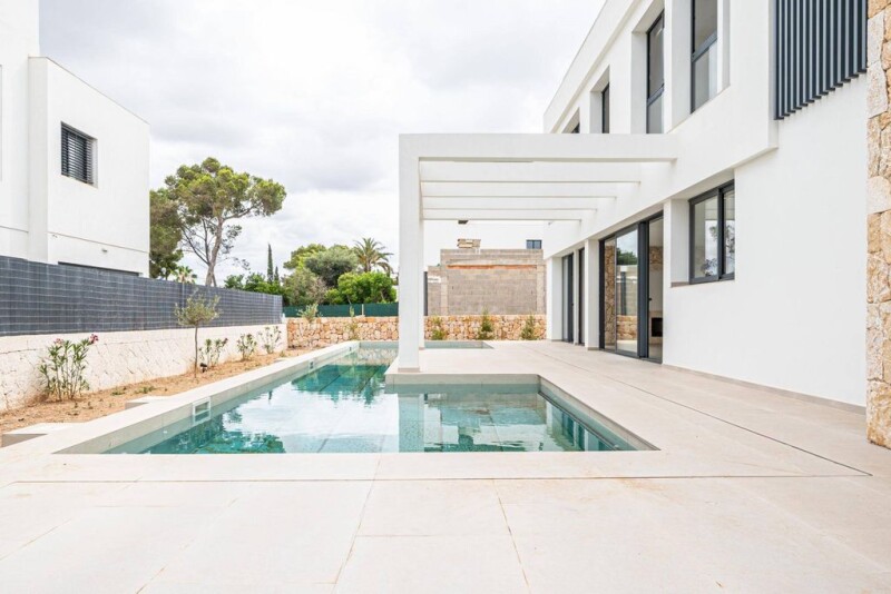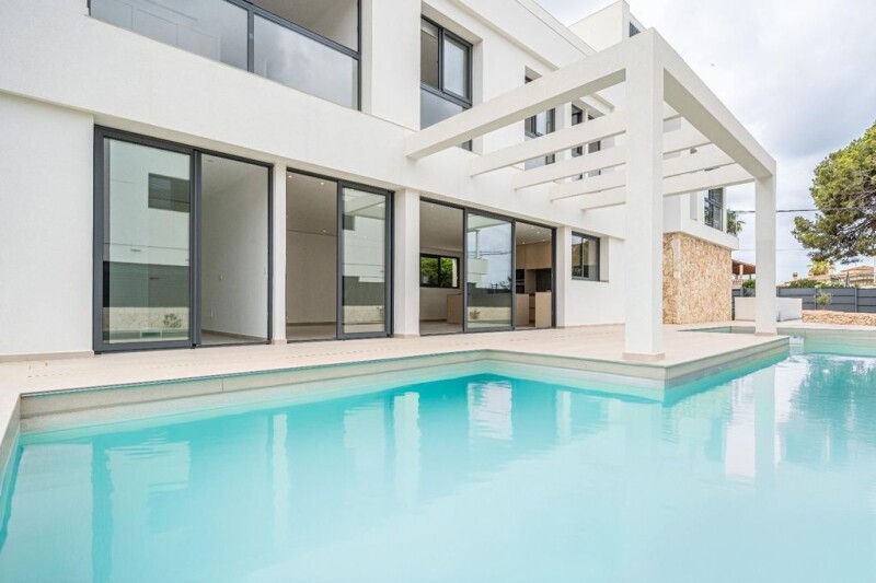 Discover this magnificent new villa, located in the coveted urbanization of Son Veri, where you can enjoy spectacular sea views from the comfort of your home. ~~This villa, with a plot of 600 square meters and a built area of approximately 280 square meters, offers a luxury lifestyle in a quiet and exclusive environment.~~Upon entering the house, you will be greeted by a spacious living room that integrates harmoniously with a fully equipped open kitchen, creating an ideal space for family and social gatherings. On this first floor, you will also find a bedroom and a full bathroom, perfect for guests or to be used as an office.~~Going upstairs, you will find 4 spacious bedrooms. ~Two of them have elegant en-suite bathrooms, providing an extra touch of comfort and privacy. In addition, there is a third full bathroom at the end of the hallway that serves the other two bedrooms. ~In the master bedroom, there is a spacious dressing room and all the bedrooms have built-in closets. Every detail has been carefully designed to offer maximum comfort.~~One of the highlights of this house is its spectacular solarium, a perfect place to relax and enjoy the Mediterranean climate while contemplating the sea. Imagine summer evenings, sunbathing or enjoying a glass of wine with unparalleled views.~~The exterior of the house is not far behind in terms of luxury and comfort. ~It has a private pool where you can cool off and spend unforgettable moments with family and friends. It also has a garage with capacity for two cars, ensuring space and security for your vehicles.~~Among other features of this house, it is worth mentioning the double glazed windows, which provide excellent brightness, stone floors, air conditioning in each of the rooms and underfloor heating.~~This property is more than a house, it is a lifestyle. The urbanization of Son Veri is known for its exclusivity and proximity to all necessary services, without losing the tranquility and privacy that we all desire.~~Do not miss this unique opportunity to acquire a dream home in one of the best locations on the coast. Contact us today for more information and to arrange a visit, you will fall in love at first sight!.