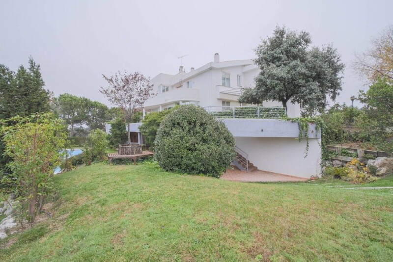 The villa is located in the urbanization Ciudalcampo, a luxury residential housing development located 20 km north of Madrid center and 20 minutes from Adolfo Suarez Airport. Imposing a detached villa located in a very private cul-de-sac with the best views of Ciudalcampo. Of magnificent construction, it stands out for its wide spaces and its great luminosity. Despite its size, it is a very comfortable and functional property. It is ideal for all types of families. The house has about 900 m2 built and more than 4,000 m2 of plot. It has six bedrooms and six bathrooms, including the service quarters. A skylight above the stairwell provides plenty of light. The three floors of the property are also connected by an elevator. The main floor unfolds from an entrance hall that leads to a huge living room with a fireplace in three rooms (living area, reception area, and dining area). The kitchen, connected to the dining room, is simply spectacular, with a central island with a marble countertop, office area, and pantry. It has access to a charming porch and garden. Next to the kitchen are located the laundry room and the service quarters, which have a separate entrance and constitute a true independent apartment, with a living room, full kitchen, and bedroom with bathroom. On this level, there is also a guest room with access to the terrace and en suite bathroom. There is also a guest toilet. Upstairs there are four magnificent bedrooms, all with access to a beautiful terrace overlooking the mountains. The master bedroom has a living room with a fireplace, a huge modern dressing room, and a double bathroom with a shower and jacuzzi. Another bedroom has an en-suite bathroom, while the other two bedrooms share a bathroom and a multipurpose room that can be used as a leisure and workspace. The lower floor (divided into two levels) houses a large leisure area, which includes a spectacular gym with floor-to-ceiling windows and access to the garden, Turkish bath, wine cellar, workshop/study, and a huge room of over 100 m2 that could be used as a txoko or spa. This level has access to a nice covered porch and the pool. The porch has a bar, Jacuzzi, and full bathroom (with shower) and is ideal for entertaining guests, especially in the summer months, The garage has a capacity for two cars, and another two can be parked outside. The garden is very consolidated and is divided into two areas: one with lawn and good views, where the pool is located, and another, wilder, which was formerly an orchard and is separated from the first by a gate and a wall. The heating is by natural gas and the air conditioning is by ducts. The oak wood floors and double glazing in all rooms stand out in the quality report.