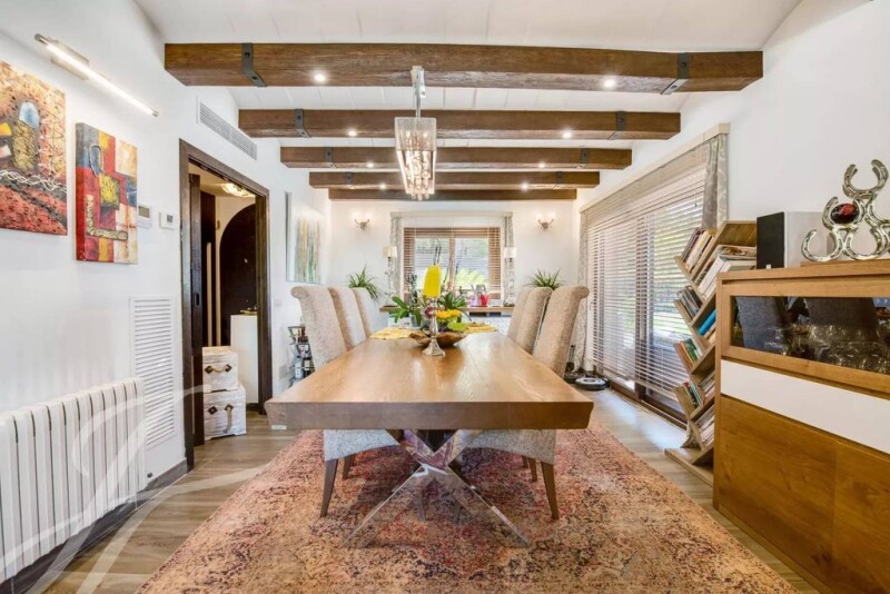 This wonderful rustic finca between Calvia and Palmanova has been carefully renovated and is located in the middle of nature. It offers panoramic views of the bay of Santa Ponsa, the sea and the Galatzó mountain. Thanks to its orientation, the house receives a lot of sunlight and creates a warm and cosy atmosphere. On the ground floor, an elegant entrance hall leads to a living room with electric fireplace, a modern, fully equipped open plan kitchen and a spacious dining room. There is also a practical utility room. On the first floor there are four charming bedrooms, including the master bedroom with two dressing rooms and en suite bathroom, as well as a bedroom with private covered terrace. The outdoor areas are exceptional, with a large swimming pool, several terraces, lawns and an outdoor kitchen. If you enjoy horse riding, this finca is ideal for owning your own horses in a beautiful setting, with extensive fields where the animals can enjoy their life. Modern amenities include a garage and carport that blend harmoniously with the natural surroundings, creating an idyllic retreat that combines tranquillity and sophistication. Palmanova is a popular residential area for many residents who wish to live there all year round, due to its proximity to Palma and its excellent infrastructure. This coastal town is characterized by a wide, shallow bay and three impressive sandy beaches with warm, calm waters. It is centrally located in the popular southwest region and offers an ideal starting point for various explorations of this area of Mallorca. Both families and part-time residents from all over Europe are attracted to Palmanova. There are plenty of supermarkets for daily needs as well as medical care. The properties on offer in this small-town range from holiday studios to luxury villas worth several million euros. Palmanova is surrounded by beautiful houses, flats, and a charming little harbour, so there is something to suit everyone's taste. There is also a wide choice of first-class restaurants in Palma Nova, most of which are located along the main street on the promenade and offer picturesque views of the sea. There are many fascinating events in the area to keep you entertained, such as beach volleyball tournaments or live music events. In addition, exciting regattas take place regularly, thrilling both participants and spectators.