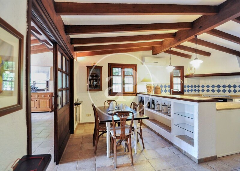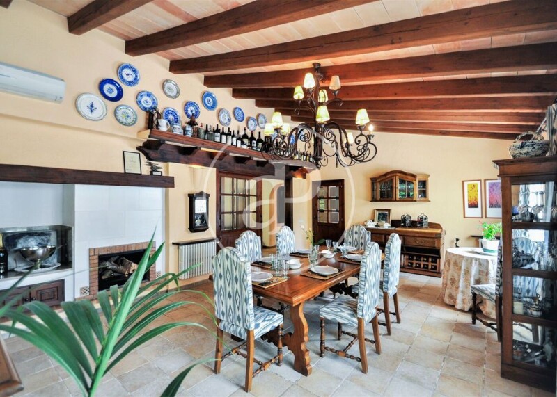 In the middle of a serene rural setting and with spectacular views of the Tramuntana mountain range, lies this charming country house, just outside the picturesque village of Sencelles. Local stone, old wood and terracotta are the predominant materials of the house, masterfully used to structure the house which is distributed over 2 floors. The lower floor consists of a living room with 2 fireplaces surrounded by large panoramic windows that communicate directly with the outside patio. The living room leads to the dining room overlooking the kitchen, laundry room and pantry. Also on the ground floor we find 3 double bedrooms and 2 full bathrooms. Going up a staircase we reach the upper floor where we find 2 double bedrooms with en-suite bathrooms, one of them with a dressing room, a third room with a private bathroom and a terrace with a suggestive view of the mountains. To further enhance the picturesque vegetation of the property, the garden is filled with palm trees, roses, bougainvillea and olive trees. An essential element of the outdoor oasis is the saltwater pool immersed in a spectacular solarium with views The outdoor spaces invite you to relax with its numerous open terraces and porches on different levels for social enjoyment, with sun all day and an atmosphere of absolute peace. The property also has an independent guest house that offers a cozy living room, 2 bedrooms, a full bathroom and a back porch. In addition, the property has additional buildings such as a workshop, horse stable, equestrian track, soccer field and an area with fruit trees. The property has air conditioning, central heating, a well with its own water source, wooden beams, stoneware floors, double-glazed windows and hardwood doors and windows. This property offers a secure and exclusive environment for your peace and comfort. If you appreciate outdoor living, this property is perfect for you. Can you imagine living here? We look forward to hearing from you! .
