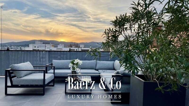 This spacious penthouse has a sun terrace of about 90 m² with stunning panoramic views of the city, the harbor and the sea to the Tramuntana mountains. The property was completely renovated in 2021 and is distributed as follows: a spacious and light-filled living/dining area with fireplace with adjacent open and fully equipped kitchen, three bedrooms, two bathrooms and a dressing room. From the living area you have access to the L-shaped sun terrace with cozy lounge seating area, BBQ and additional dining area. A parking space in the underground garage of the building and a storage room complete this offer. The penthouse is easily accessible by elevator. The furniture is not included, but can be purchased additionally. Underfloor heating, Fireplace, Air conditioning cold/hot, BBQ, Parking space in underground garage, Elevator in building, Bosch kitchen appliances, Double glazing Palma de Mallorca is the capital of Mallorca and one of the most interesting cities in Europe. Especially the bay of Palma with its numerous luxury yachts, restaurants and clubs, the port for the huge cruise ships, the impressive cathedral La Seu and the old town of Palma with its many churches, attract millions of tourists every year. The historic district of Calatrava, the old town, the promenade Paseo Maritimo or the former fishing district Portixol are in the immediate vicinity. The proximity to the airport "Aeropuerto de Son San Juan" makes the purchase of a property in or near Palma particularly attractive for buyers from all over Europe.