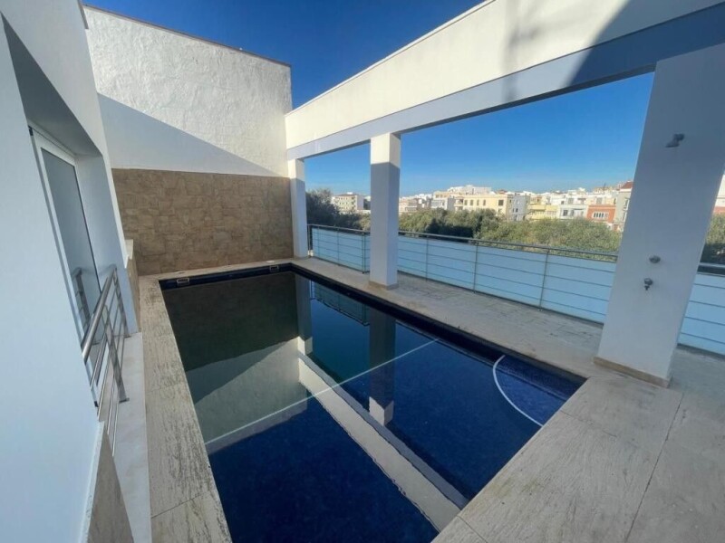 For those seeking space, comfort, and a touch of luxury, we present this spectacular detached house with a privileged location, just a short distance from the center of Ciutadella and only a 5-minute walk to the charming Playa Grande. With a unique design and layout designed for maximum comfort, this property is ideal for enjoying life in Menorca to the fullest. With 299 m² of built space distributed over three levels, this home features elegant parquet flooring throughout, adding warmth and sophistication to every room. The ground floor has three spacious bedrooms, all with direct access to a bright interior courtyard that fills every corner with natural light. Also on this floor, two full bathrooms provide convenience and functionality for the entire family. An elegant staircase leads to the first floor, the heart of the home, where the living-dining room, a functional kitchen, and an additional toilet are located. Large glass doors connect this floor to the terrace and private 44 m³ pool, creating a perfect space to enjoy both summer and winter with breathtaking views of Ciutadella. The 137 m² basement includes a large garage, a storage room, and a toilet, offering additional space ideal for storage or personal projects. Additionally, the house is prepared to incorporate an elevator, providing great versatility and convenience. Another key feature of this property is its air rights, allowing further expansion and customization of this magnificent home according to your needs. Located on a quiet street with no parking issues, this house combines design, functionality, and luxury to create a unique home. Don’t miss the opportunity to live in an environment that blends tranquility, style, and future potential. Schedule your visit and discover why this house is perfect for you!.
