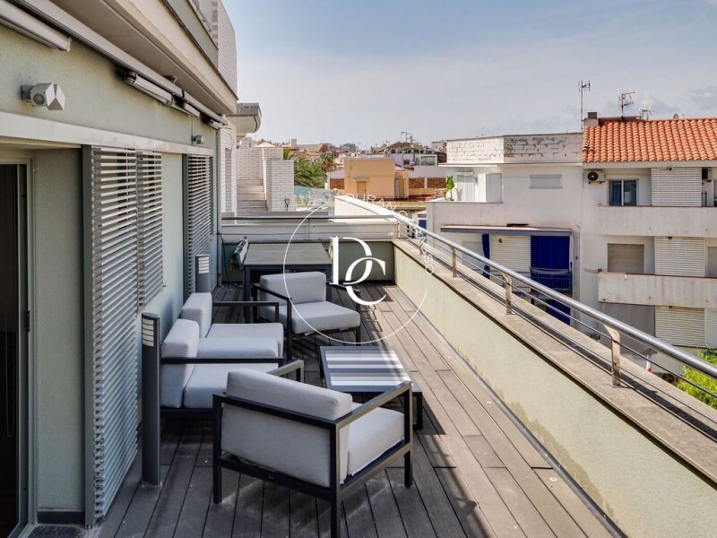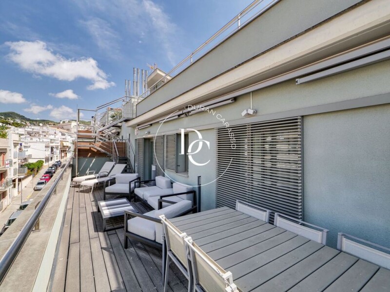 Spectacular duplex penthouse, in one of the most sought after areas of Sitges, the location is unbeatable, two minutes from the center, Sant Sebastià beach area. With views of the beach and Punta de Sitges, when we enter the apartment we find the hall where the day area is distributed, a full bathroom with shower, a separate kitchen with lots of light and a gallery. The living room is spacious and very bright and has an exterior exit to a large terrace with sea views, we continue and find two double rooms that share a full bathroom, a suite room with a bathroom, this room has access to the terrace with indirect views of the sea. The apartment is impeccable to move into, it has a very large terrace in the upper part, solarium type, it also has two parking spaces and a storage room in the same building. Live where you deserve to live.