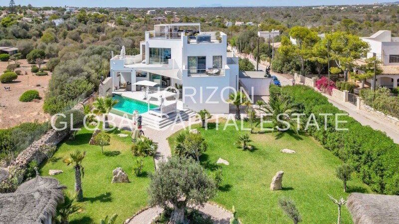Fantastic sea view villa right by the sea in Cala Llombards near Santanyí This exquisite villa is located in the picturesque municipality of Santanyí on the beautiful island of Mallorca, Spain. Nestled in a scenic setting, the villa offers the perfect balance between tranquillity and easy accessibility. The idyllic location ensures an excellent infrastructure, which is attractive for both families and individualists. Daily grocery shopping is just over 12 kilometers away and can be easily reached via a fast connection. Local public transport is also available, as the nearest bus stop is just 4.78 kilometers away. Families with young children benefit from the ideal location: the kindergarten is just 410 meters away and the elementary school is only 360 meters away, making the morning walk to school particularly convenient. Santanyí itself is known for its charming alleyways, historic buildings and lively weekly markets, which exude an incomparable Mediterranean flair. Nestled in these wonderful surroundings, this villa in Santanyí offers not only a home, but a lifestyle that benefits from the many advantages of the region. Welcome to your dream villa in Cala Llombards, Santanyí - a masterpiece of upscale architecture that combines luxury and nature in a unique way. This impressive villa, built in 2017, offers you a breathtaking living space of approx. 268 m² on a generous plot of approx. 1,172 m². You can enjoy spectacular sea views from various areas of the villa, making every day a special experience. The villa is spread over two floors and offers four stylishly designed rooms, including three bedrooms and two luxurious bathrooms. The master bedroom impresses with an en suite bathroom and offers maximum comfort. The modern fitted kitchen and the practical storage room meet all the requirements for upscale furnishings. Relax by the cozy fireplace in the lounge area or enjoy a soothing sauna bath. In the summer months, the infinity pool with sunbed and lounge area invites you to enjoy refreshing moments, while the spacious pool terrace is directly accessible from the kitchen and bedrooms. Fitness enthusiasts have their own gym at their disposal, and a private beach bar with a terrace in the garden ensures relaxing hours. The solid construction and high-quality fittings with tiled floors, efficient underfloor heating and an air/water heat pump underline the luxurious character of this well-kept property. The spacious garage offers space for four cars and a partial basement houses a cozy bodega. The property is completed by a beautiful roof terrace with a whirlpool and bar, which invites you to linger and relax with sea views. Open and covered terraces as well as a BBQ area offer space for social gatherings. The automatic garden irrigation system and the adjoining utility room ensure easy maintenance. There is also the possibility of building a second villa or a guest house on the double plot, making this property a unique investment opportunity. Let yourself be enchanted by this architectural talent and create your own personal paradise on the Mediterranean. - Shower and bathtub in the bathroom - Modern fitted kitchen - Practical storage room - High-quality tiled floors - Cable satellite TV - Cozy fireplace in the lounge area - Relaxing sauna - 4 parking spaces in a spacious garage - Partial basement with cozy bodega - Efficient underfloor heating with air/water heat pump - Overflow pool with sunbed and lounge area - Spacious pool terrace with direct access from the kitchen and bedrooms - Fitness house and private beach bar with terrace in the garden - Beautiful roof terrace with whirlpool, bar and sea view - Automatic garden irrigation system - Adjacent technical room - En suite bathroom in the master bedroom - Possibility to build a second villa or guest house on the double plot - Open and covered terraces for every occasion - BBQ area for cozy evenings - Breathtaking sea views from various areas of the villa.